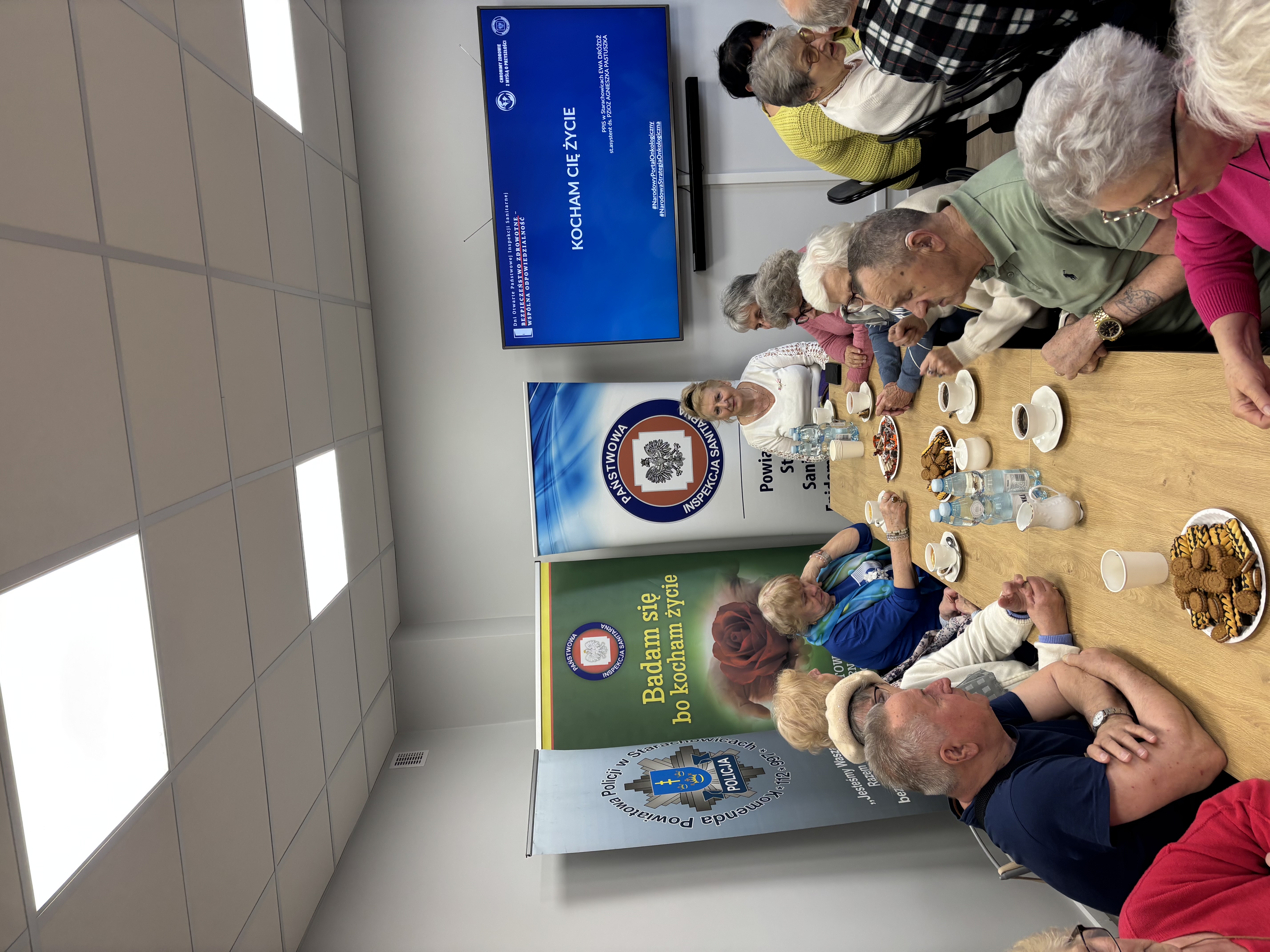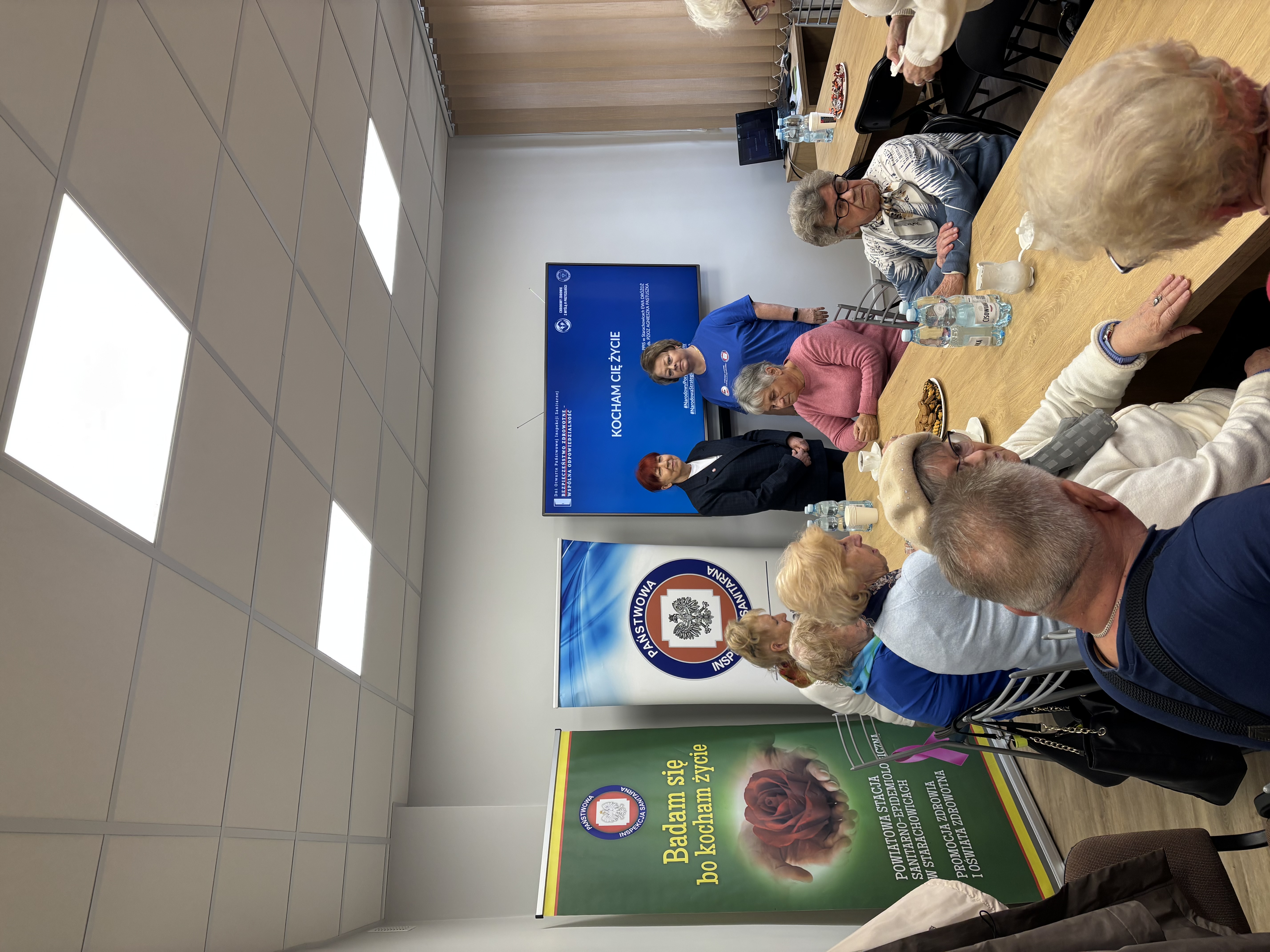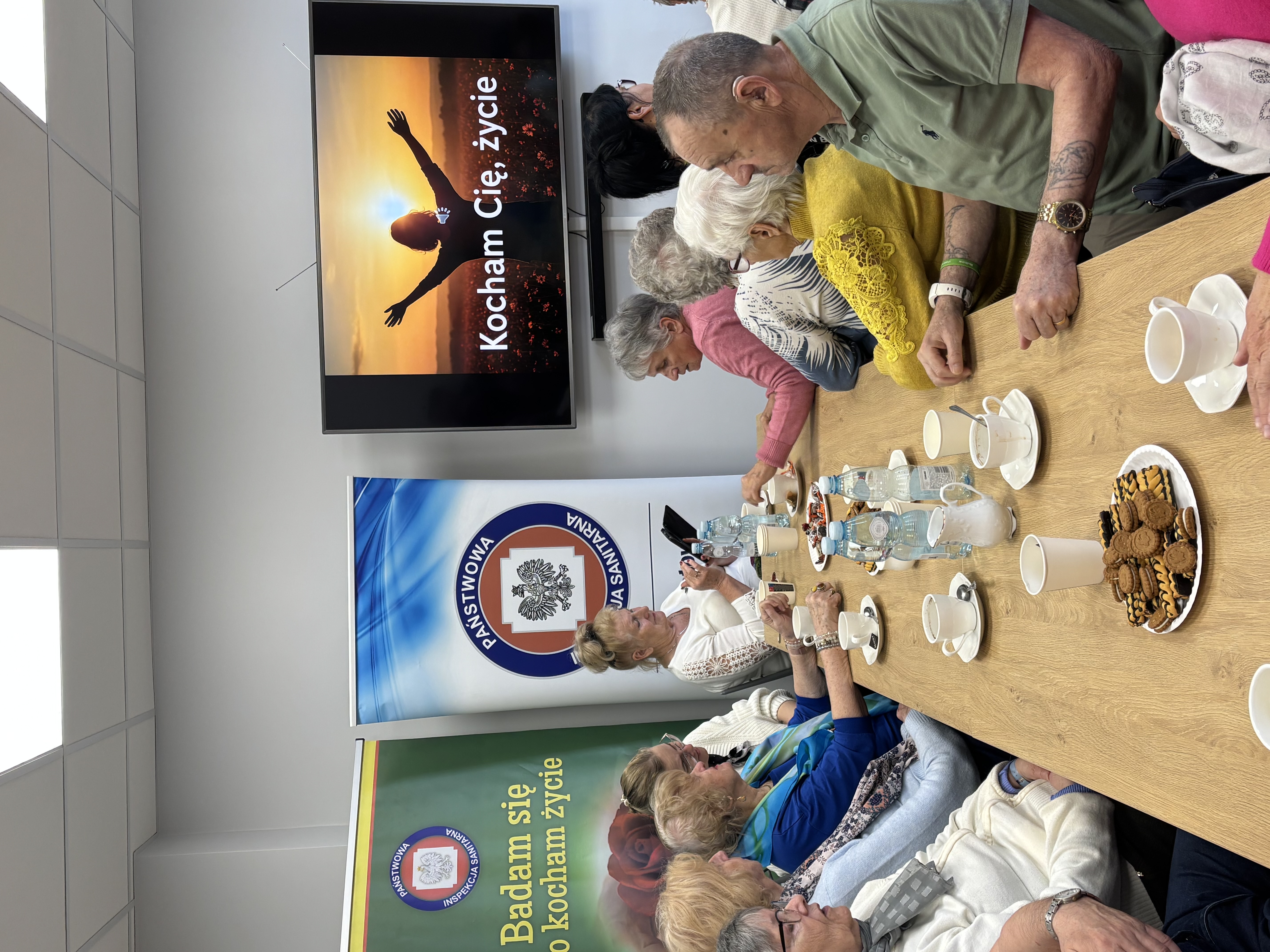 Podczas wydarzenia szczególny nacisk położono na zagadnienia związane z profilaktyką zdrowotną, w tym profilaktyką chorób nowotworowych. Omówiono znaczenie regularnych badań przesiewowych oraz wczesnego wykrywania chorób jako kluczowego elementu dbania o zdrowie i jakość życia. Uczestnicy zostali również zapoznani z tematyką szczepień ochronnych, ze szczególnym uwzględnieniem szczepień przeciwko wirusowi HPV, jako skutecznej formy zapobiegania niektórym nowotworom. W trakcie spotkania przedstawiono także założenia kampanii EU JAMRAI 2, zwracając uwagę na problem narastającej antybiotykoodporności oraz konieczność racjonalnego stosowania antybiotyków. Istotnym elementem wydarzenia była współpraca z Komendą Powiatową Policji. Oficer prasowy przeprowadził prelekcję dotyczącą bezpieczeństwa osób starszych, ze szczególnym uwzględnieniem metod zapobiegania oszustwom i wyłudzeniom, na które narażeni są seniorzy. Uczestnicy mieli również okazję zapoznać się z historią służb sanitarnych – rys historyczny w tym zakresie został przedstawiony przez Państwowego Powiatowego Inspektora Sanitarnego w Starachowicach. Spotkaniu towarzyszyła dystrybucja materiałów edukacyjnych oraz gadżetów promujących zdrowy styl życia, a także działalność Państwowej Inspekcji Sanitarnej. Wydarzenie przebiegało w bardzo miłej i przyjaznej atmosferze, sprzyjającej aktywnemu udziałowi uczestników, którzy chętnie zadawali pytania i dzielili się swoimi doświadczeniami. Spotkanie stanowiło ważny element działań promujących zdrowie oraz podnoszących świadomość w zakresie profilaktyki