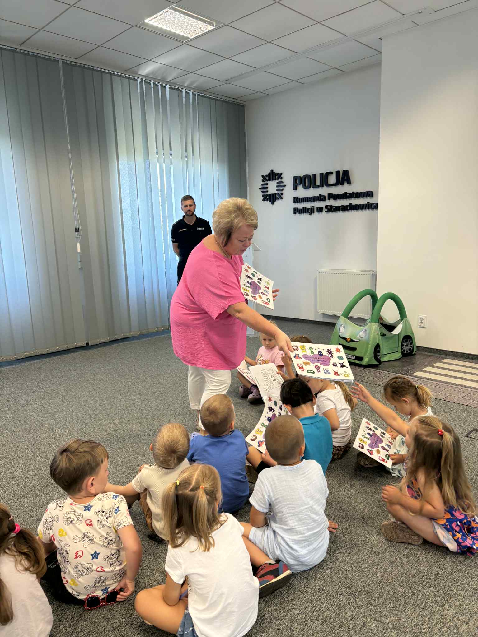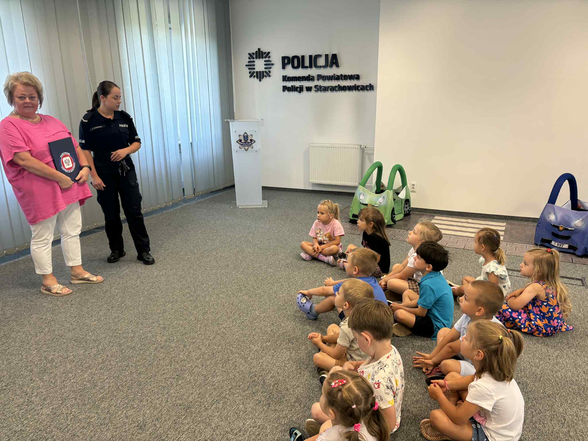 W ramach wspólnej akcji „Bezpieczne wakacje z Sanepidem”, prowadzonej przez Państwową Inspekcję Sanitarną i Komendę Powiatową Policji, dzieci z przedszkola „Re - Re - Kum - Kum” w Starachowicach odwiedziły siedzibę policji.