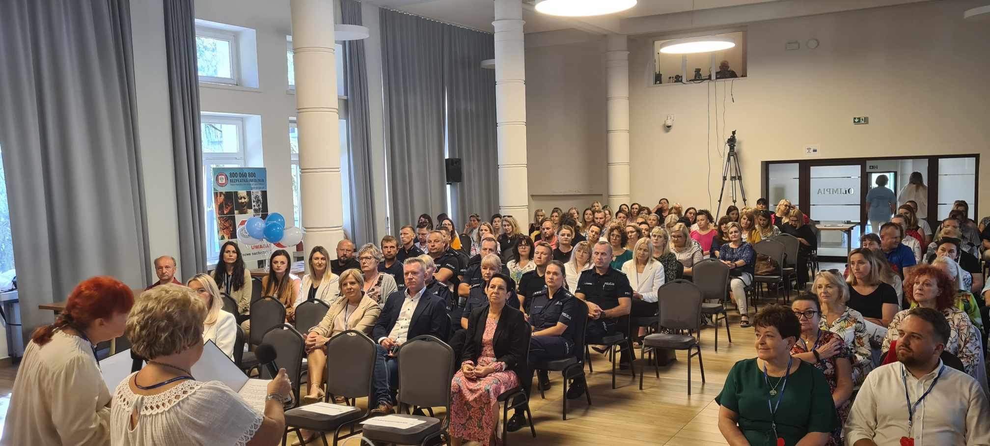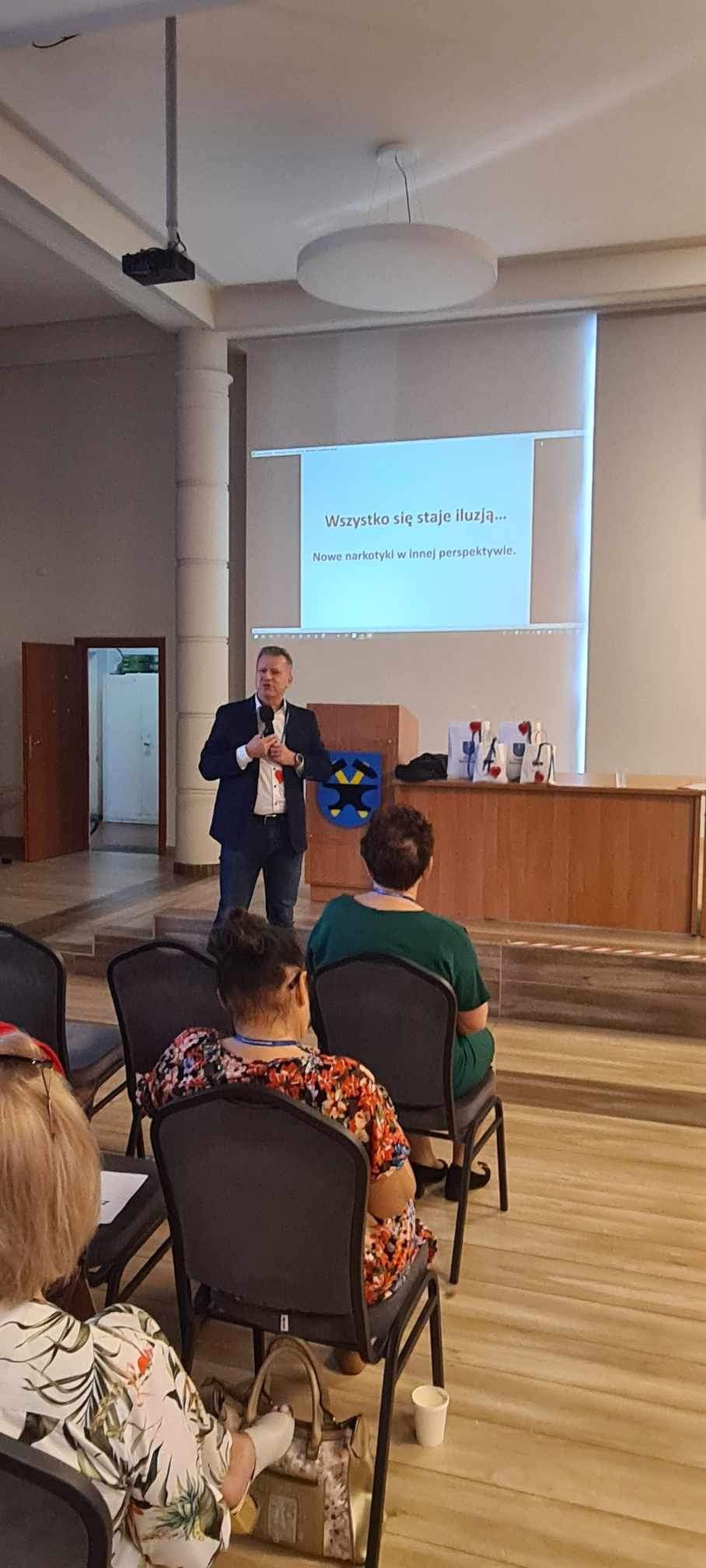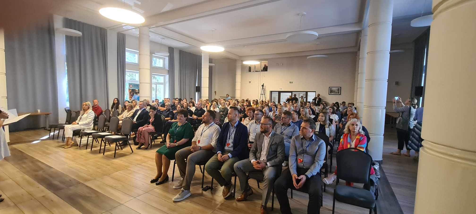 Profilaktyka uzależnień od substancji psychoaktywnych – temat zawsze aktualny” to tytuł konferencji, która odbyła się dnia 22 września 2023r w Urzędzie Miasta w Starachowicach. Hasło konferencji wpisuje się w realizowany na terenie miasta i powiatu starachowickiego projekt „Dajemy nadzieję działając” dofinansowany przez Gminę Starachowice i Powiat Starachowicki. W konferencji udział wzięli: Świętokrzyski Państwowy Wojewódzki Inspektor Sanitarny Pan Jarosław Ciura, Prezydent Miasta Starachowice Pan Marek Materek, Zastępca Prezydenta Miasta Starachowice Pan Marin Gołębiowski, Starosta Powiatu Starachowickiego Pan Piotr Ambroszczyk oraz dyrektorzy szkół, pedagodzy, nauczyciele oraz instytucje zajmujące się poruszanymi problemami.
