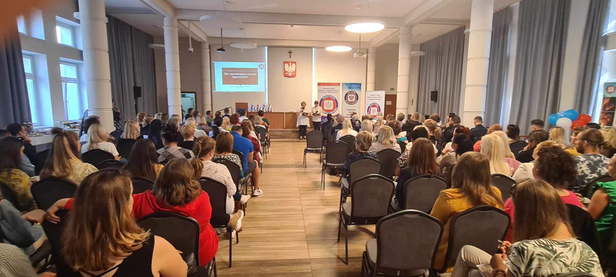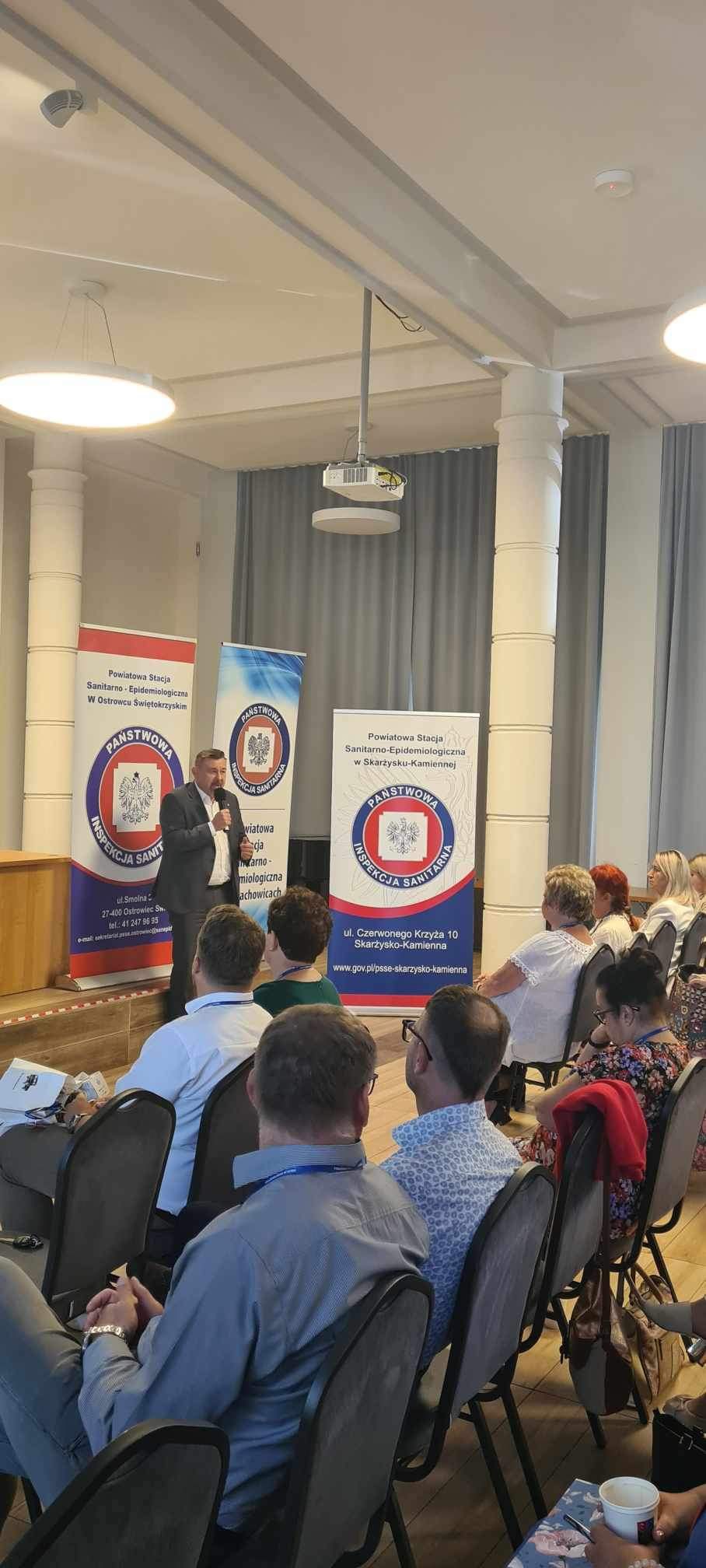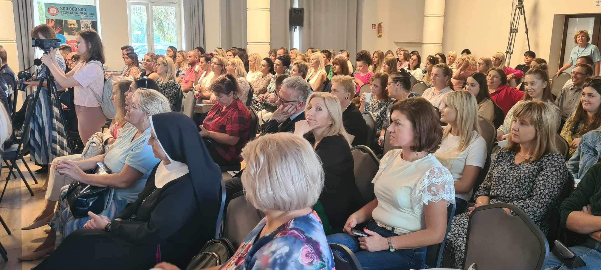 Profilaktyka uzależnień od substancji psychoaktywnych – temat zawsze aktualny” to tytuł konferencji, która odbyła się dnia 22 września 2023r w Urzędzie Miasta w Starachowicach. Hasło konferencji wpisuje się w realizowany na terenie miasta i powiatu starachowickiego projekt „Dajemy nadzieję działając” dofinansowany przez Gminę Starachowice i Powiat Starachowicki. W konferencji udział wzięli: Świętokrzyski Państwowy Wojewódzki Inspektor Sanitarny Pan Jarosław Ciura, Prezydent Miasta Starachowice Pan Marek Materek, Zastępca Prezydenta Miasta Starachowice Pan Marin Gołębiowski, Starosta Powiatu Starachowickiego Pan Piotr Ambroszczyk oraz dyrektorzy szkół, pedagodzy, nauczyciele oraz instytucje zajmujące się poruszanymi problemami.