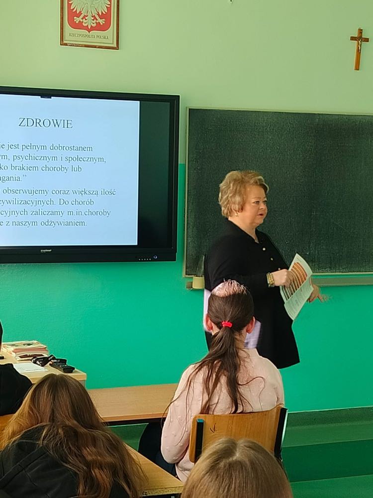 Dokonano analizy powikłań w/w chorób, oraz korzyści zdrowotnych płynących z regularnej aktywności fizycznej. Zwrócono uwagę na fakt iż optymalny poziom aktywności stymuluje rozwój, zabezpiecza potrzeby ruchowe, wzmacnia wydolność serca, poprawia elastyczność mięśni i stawów, wzmacnia mięśnie i kości. Podkreślono iż odżywianie jest ważną sferą w życiu człowieka. Uczniów przestrzegano również przed sięganiem po napoje energetyzujące, papierosy, e-papierosy, alkohol czy środki psychoaktywne, które mają negatywny wpływ na zdrowie młodzieży. Na zakończenie odniesiono się do zasad racjonalnego odżywiania w oparciu o talerz zdrowia, oraz podkreślono rolę śniadania jako najważniejszego posiłku w ciągu dnia.