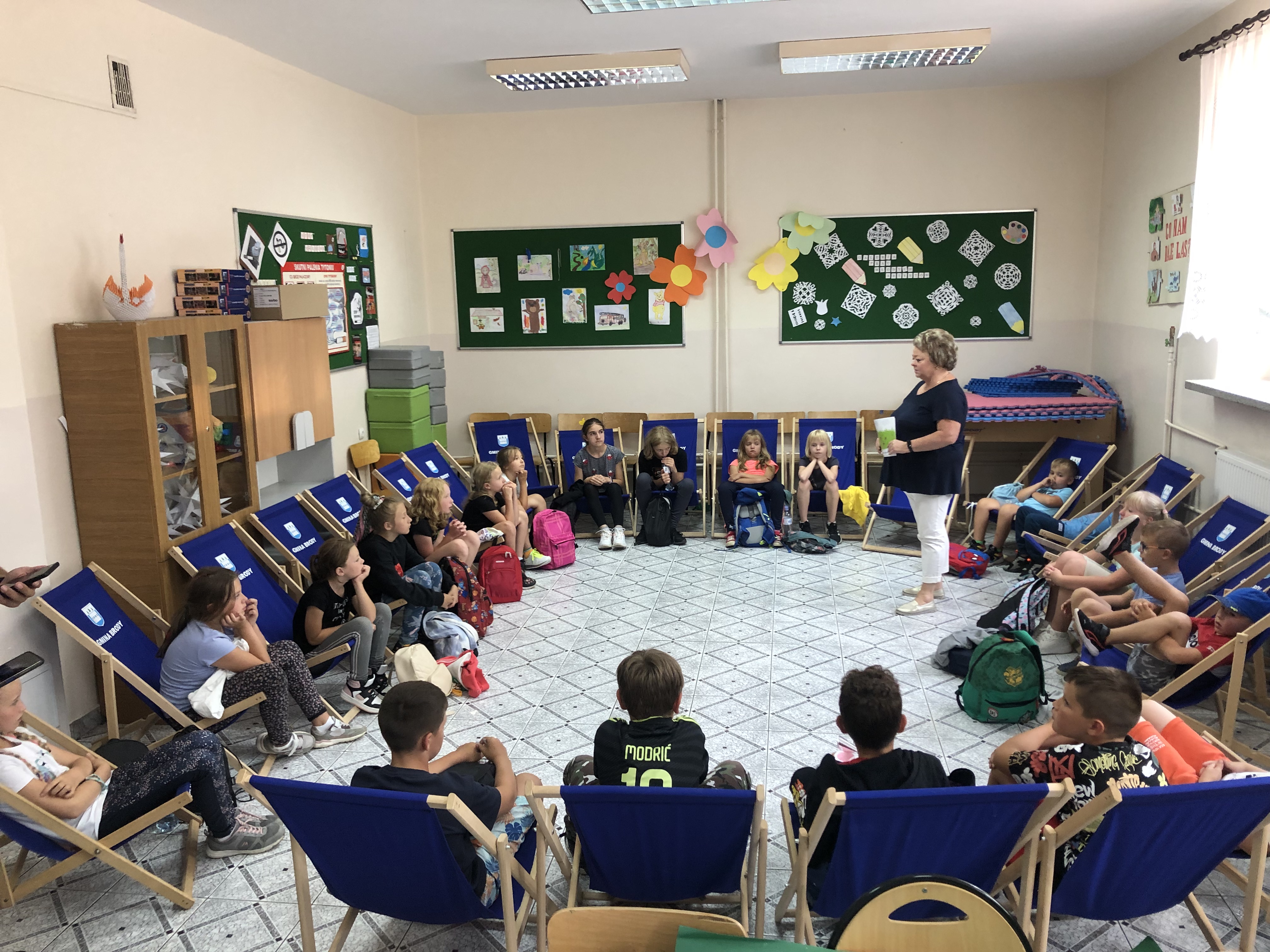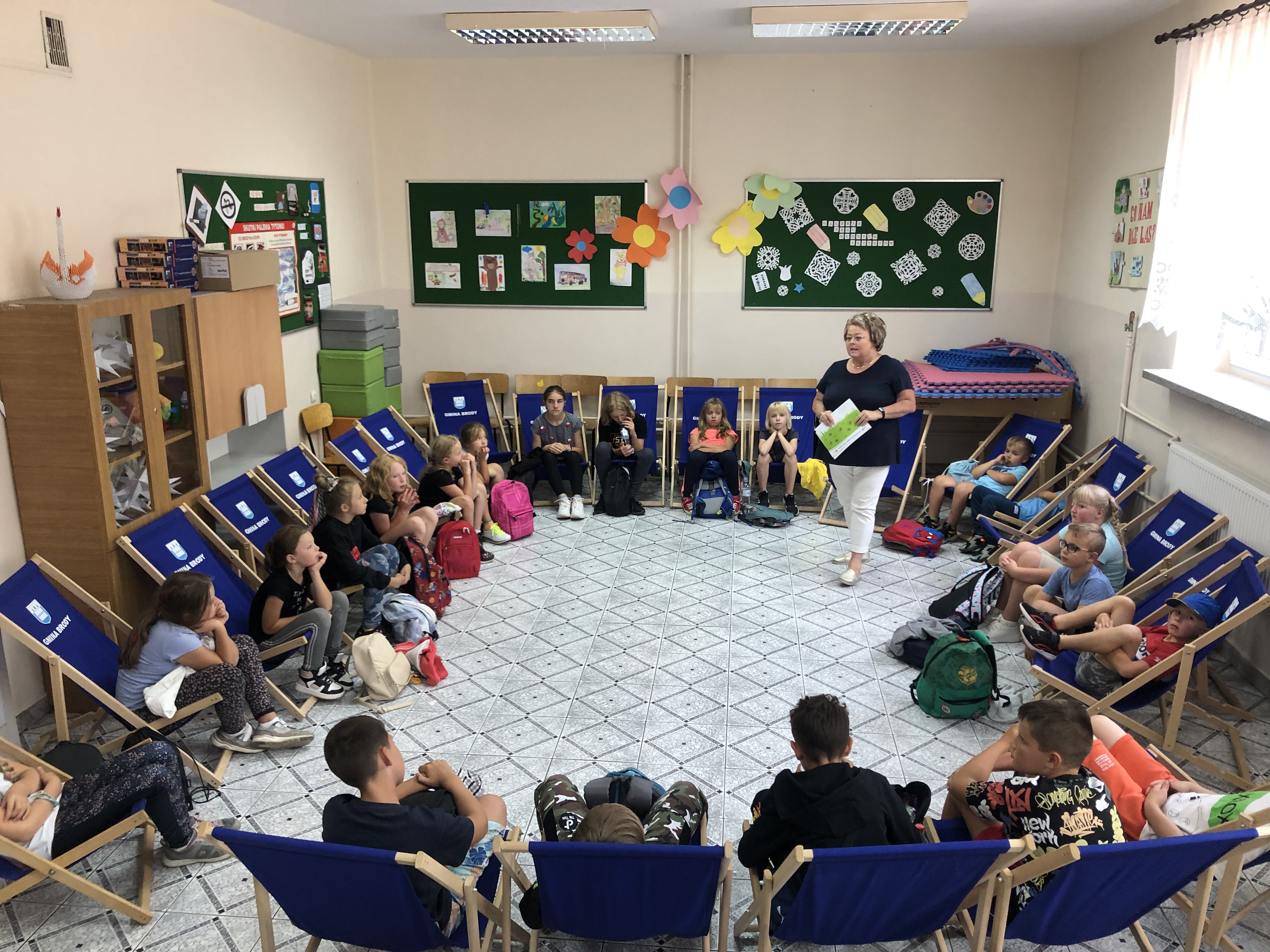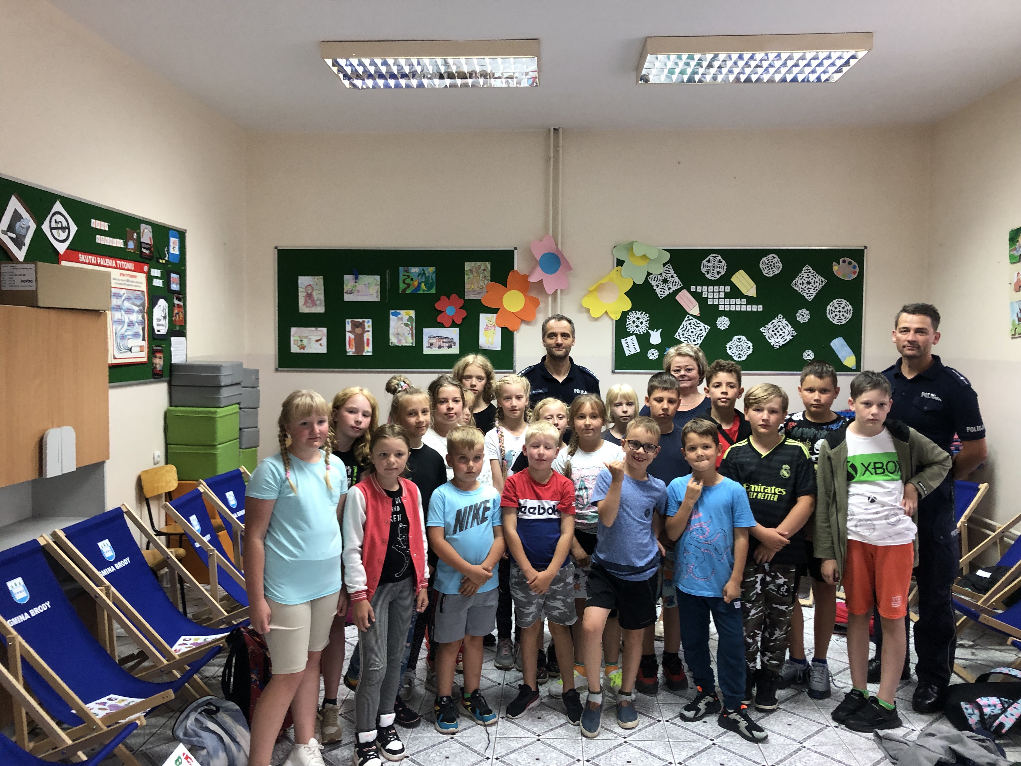 Przedstawicielka Powiatowej Stacji Sanitarno Epidemiologicznej w Starachowicach oraz przedstawiciele Komendy Powiatowej Policji w Starachowicach dnia 9 sierpnia 2023 wzięli udział w kolejnym spotkaniu z dziećmi uczestniczącymi w zorganizowanych półkoloniach przez Wójta Gminy Brody p. Marzenę Bernat oraz Centrum Kultury i Rekreacji w Brodach.