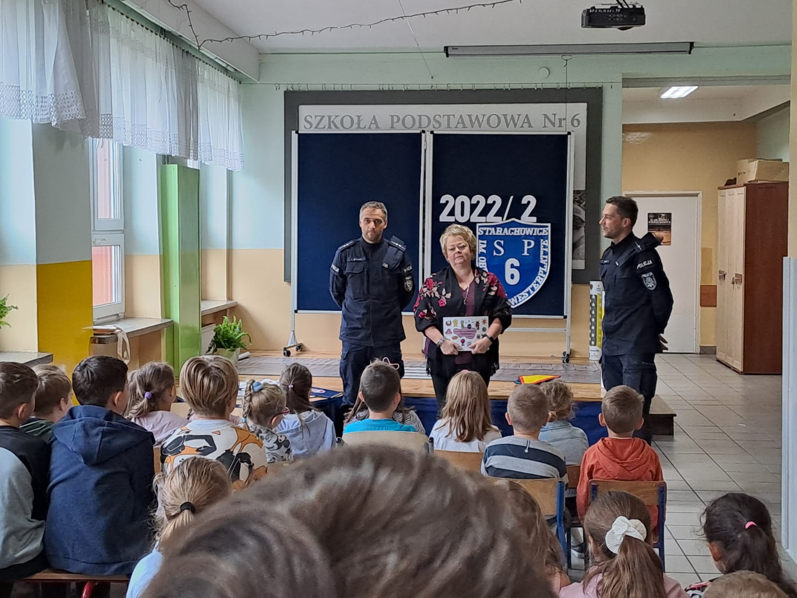 Dnia 4 października 2022r w Szkole Podstawowej nr 6 im. Obrońców Westerplatte w Starachowicach st. asystent ds. Promocji Zdrowia Agnieszka Pastuszka przeprowadziła spotkanie profilaktyczno – edukacyjne dla uczniów klas I-III zatytułowane „MYJĘ RĘCE BO WIEM WIĘCEJ”.