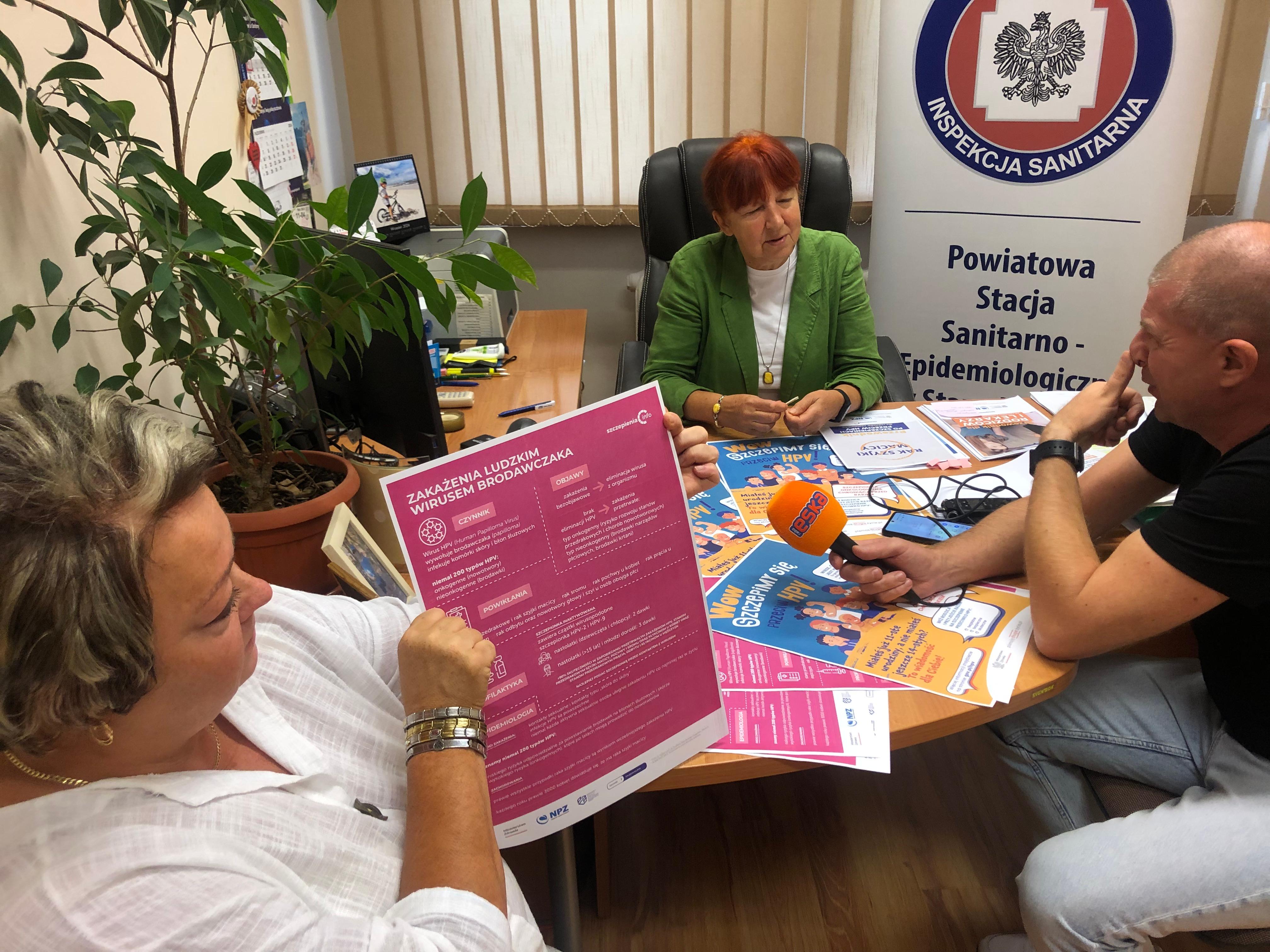 Dnia 10.09.2024 w siedzibie PSSE Starachowice zostało zorganizowane spotkanie z dziennikarzami lokalnych mediów: TV Starachowice, Radia Eska Starachowice oraz Nowej Gazety Starachowickiej. PPIS przekazała wiadomości nt. prowadzonej akcji informacyjnej dot. szczepień HPV. Poinformowała, iż od 1 września 2024 r. bezpłatne szczepienia w ramach powszechnego programu szczepień przeciw HPV dostępne są dla osób po ukończeniu 9. roku życia do ukończenia 14. roku życia.
