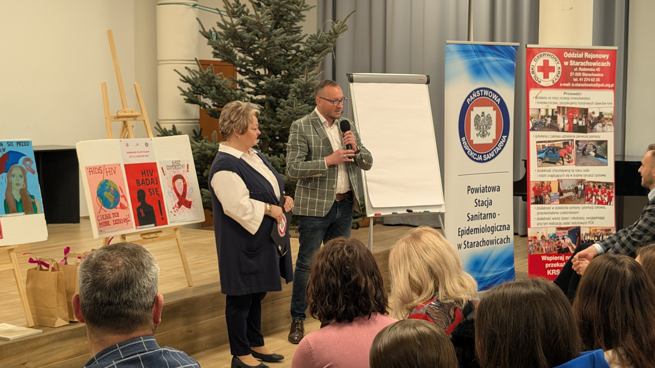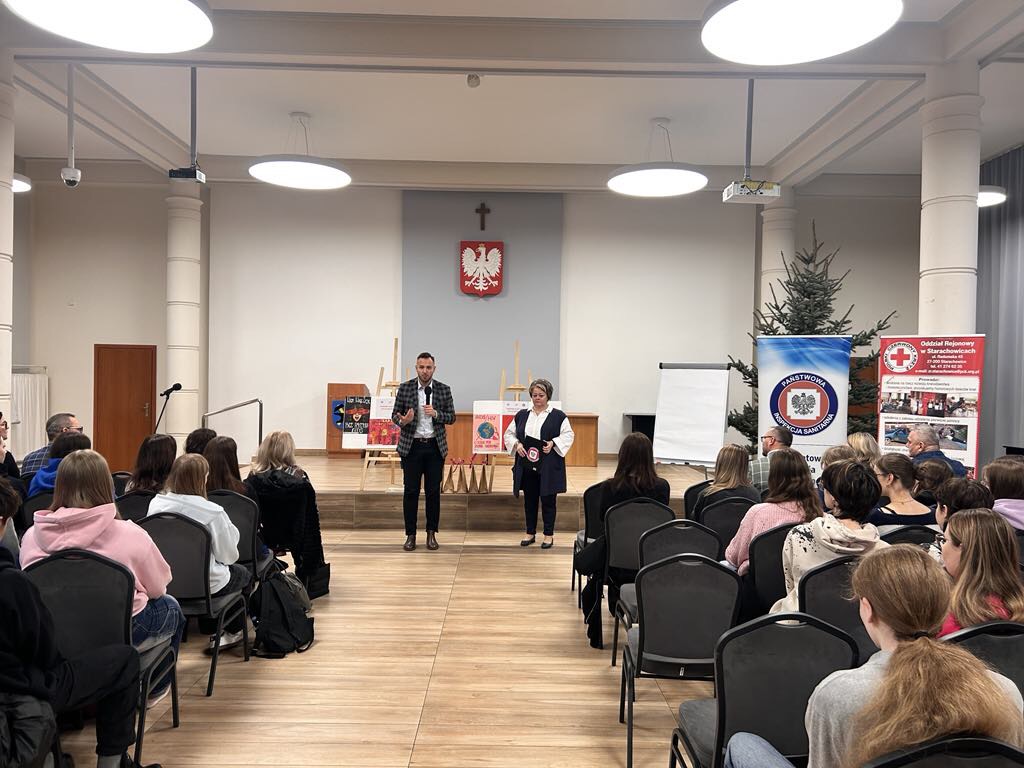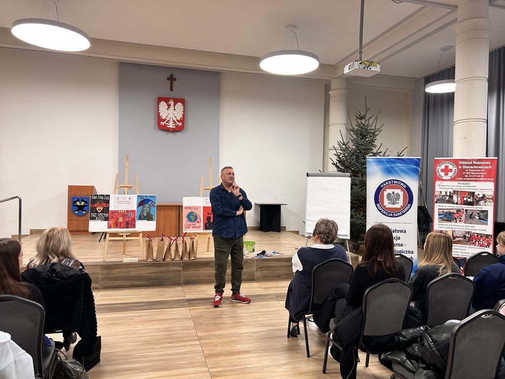 W ramach obchodów Światowego Dnia AIDS Państwowy Powiatowy Inspektor Sanitarny w Starachowicach wspólnie z Polskim Czerwonym Krzyżem Oddział Rejonowy w Starachowicach wzorem lat ubiegłych zorganizowali konferencję profilaktyczną pod hasłem „ŻYJ Z CAŁYCH SIŁ” dla uczniów szkół ponadpodstawowych.