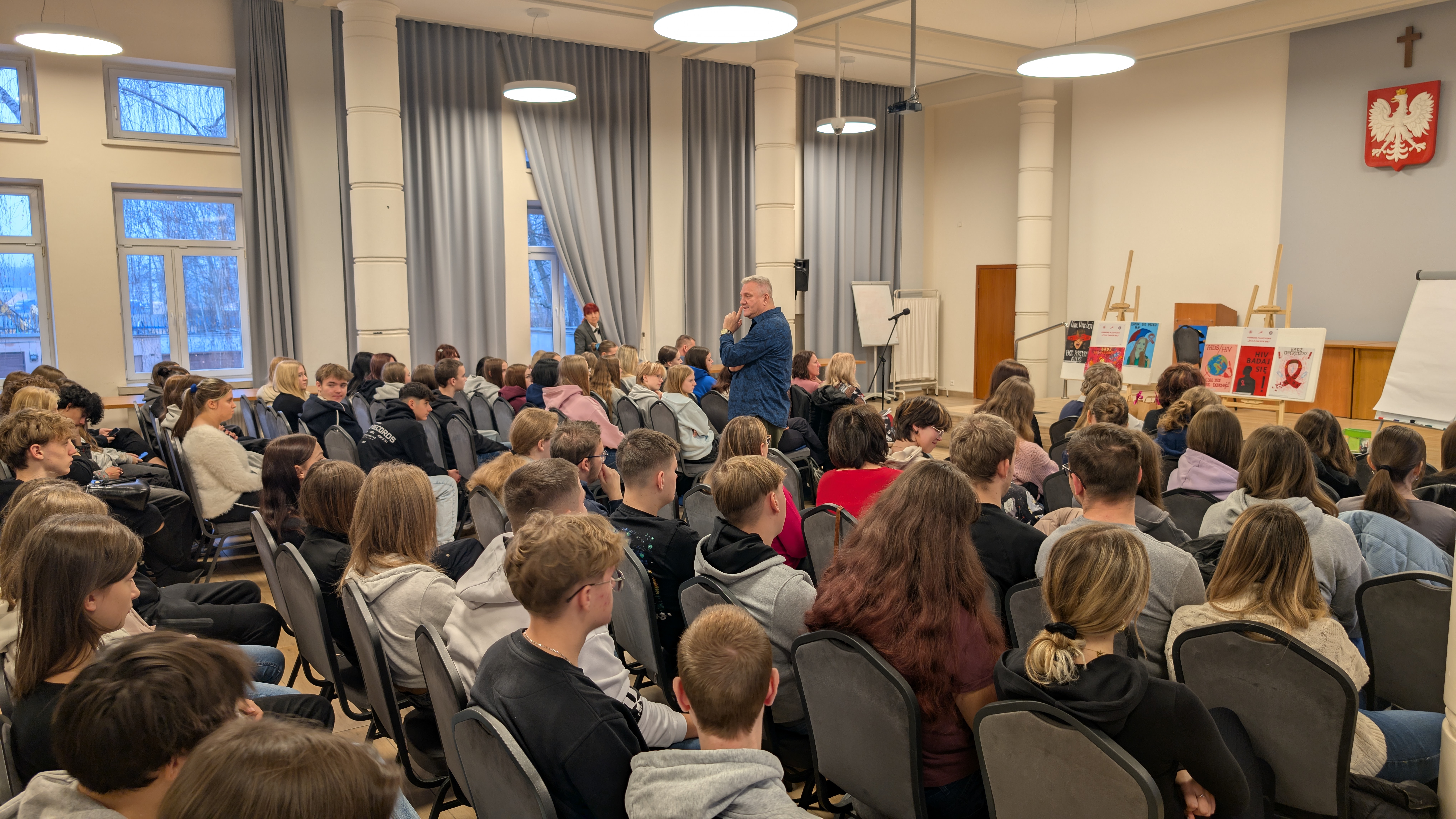 Wykładowcą podczas konferencji był konsultant i edukator w zakresie HIV/AIDS, pracownik Punktu Testującego Polskiej Fundacji Pomocy Humanitarnej „Res Humanae” z Warszawy. Jego słowa wzbudziły bardzo duże zainteresowanie wśród obecnej na spotkaniu młodzieży. Podczas prelekcji przestrzegał przed podejmowaniem ryzykownych zachowań mogących doprowadzić do zakażenia wirusem HIV. Dużo uwagi poświęcono również chorobom przenoszonym drogą płciową, oraz kampanii społecznej Krajowego Centrum ds. AIDS „Mój pierwszy raz” (#mójpierwszyraz), której celem jest przede wszystkim popularyzacja wczesnej diagnostyki w kierunku HIV. Podczas konferencji ogłoszono wyniki konkursu plastycznego pt. „ŻYJ Z CAŁYCH SIŁ”, oraz wręczono nagrody, dyplomy i podziękowania.