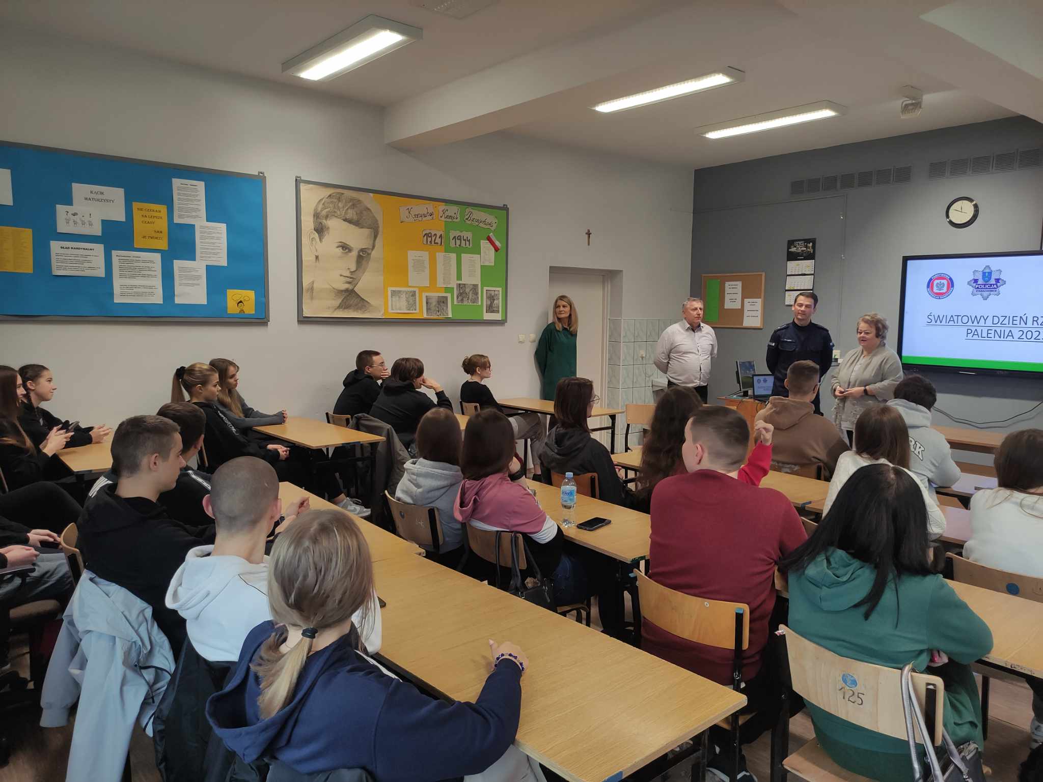 W szkolnych gablotach pojawiły się plakaty przestrzegające młodzież przed szkodliwym wpływem palenia papierosów i nowatorskich wyrobów tytoniowych. Przedstawiciele samorządu uczniowskiego wspólnie z zaproszonymi dokonali plakatowania szkoły oraz zorganizowano stoisko z materiałami edukacyjnymi. Uczniowie uczestniczyli w prelekcji multimedialnej nt. palenia tytoniu oraz obejrzeli film edukacyjny Papierosy & e-papierosy niebezpieczna moda.