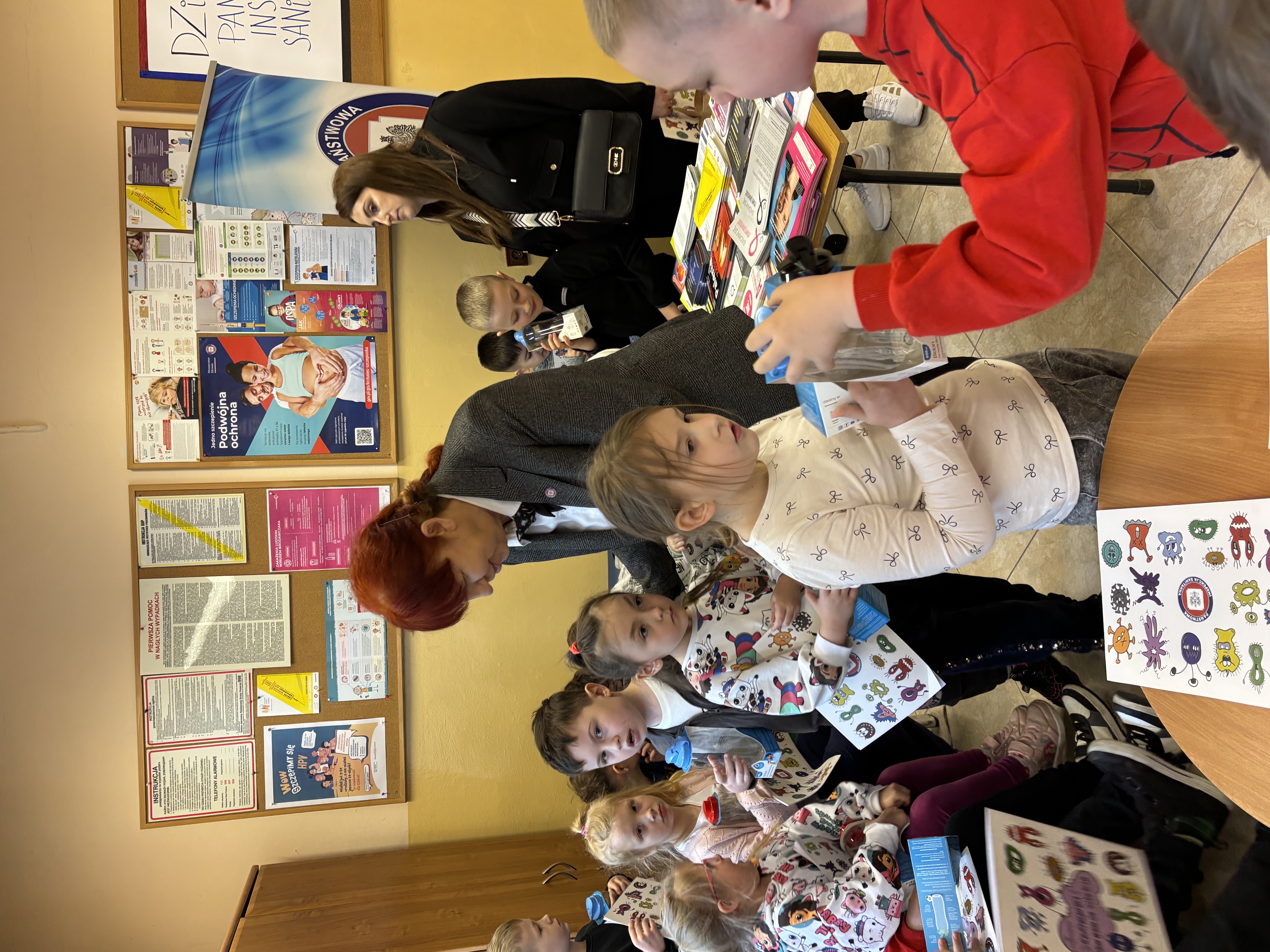 Dla dzieci zorganizowano warsztaty dotyczące higieny mycia rąk pod hasłem „Myje ręce, bo wiem więcej”. Zapoznano dzieci z tematyką higieny mycia rąk, mówiono o tym, jak poprawnie i dokładnie myć ręce podkreślając, iż jest to jedno z kluczowych działań profilaktycznych. Rozmawiano na temat zagrożeń jakie powodują bakterie obecne na naszych rękach, które w konsekwencji mogą być przyczyną licznych chorób. Na podstawie prezentacji multimedialnej