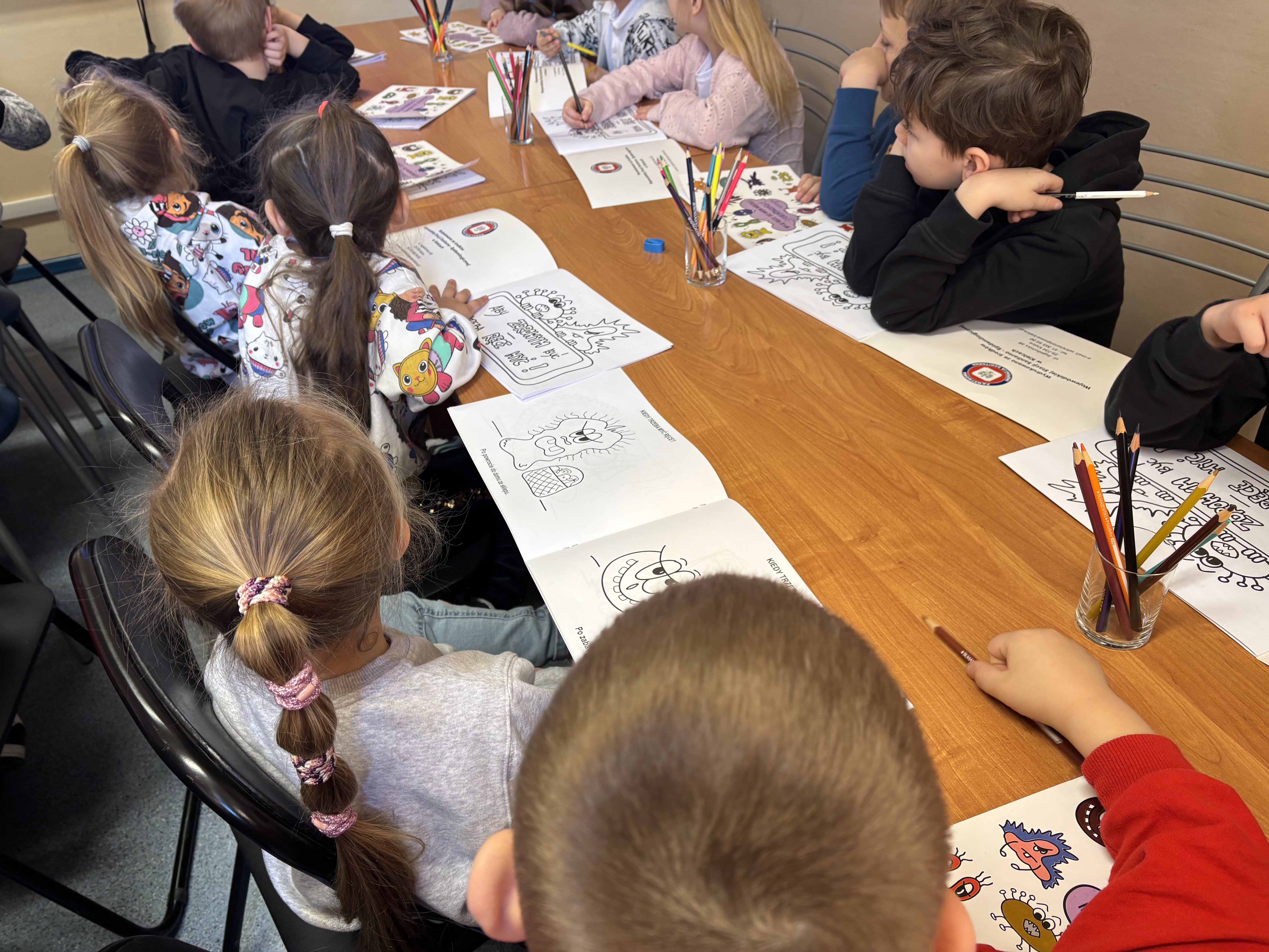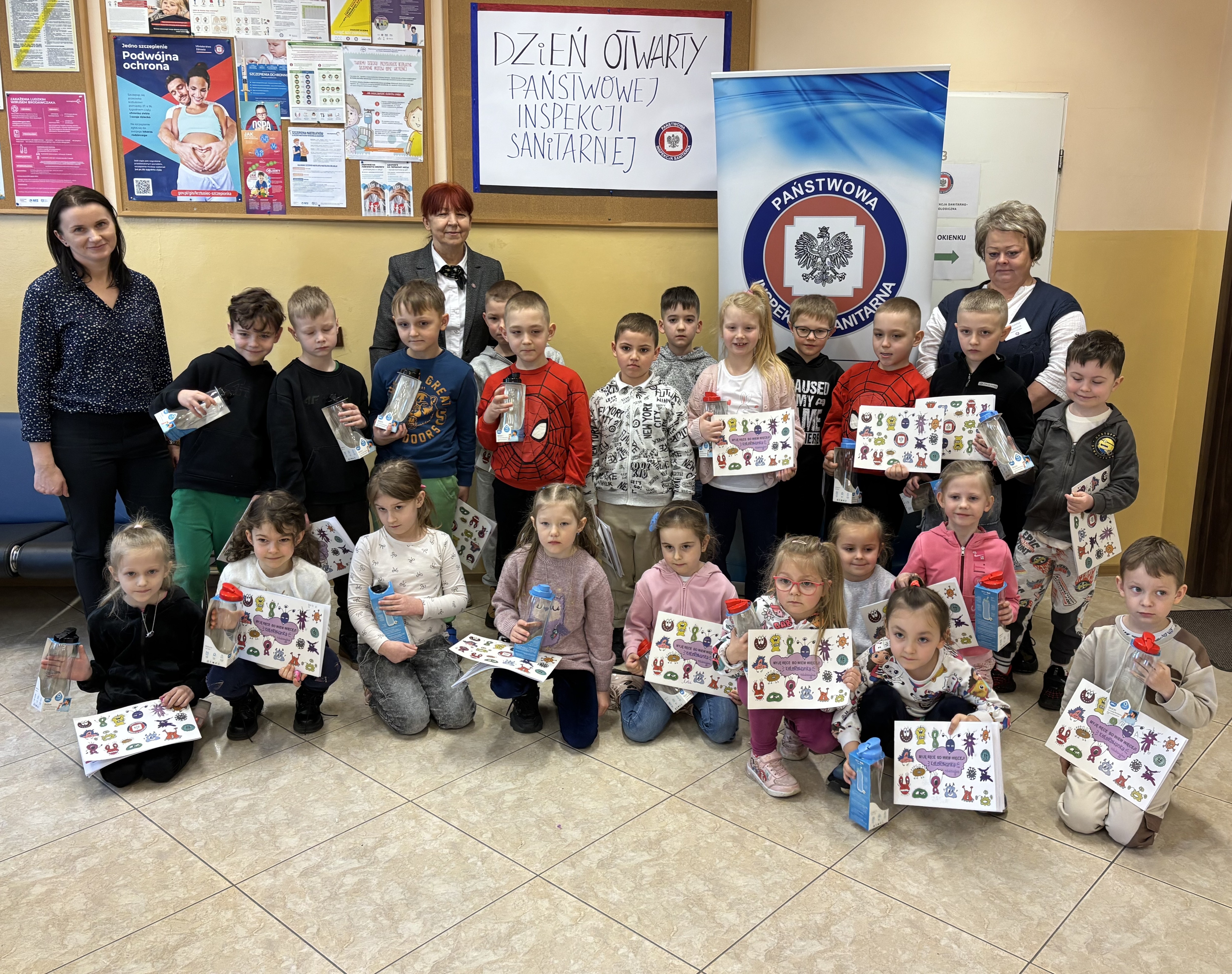 i kolorowanek edukacyjnych pokazano dzieciom jak poprawnie myć ręce. Dzieci aktywnie uczestniczyły w spotkaniu, chętnie wykonywały prace plastyczne i odpowiadały na zadawane pytania. Na zakończenie warsztatów każde dziecko otrzymało kolorowankę edukacyjną, aby mogło pokazać rodzicom i podczas zajęć w przedszkolu utrwalić zdobytą wiedzę. Uświadomiliśmy również dzieciom jak ważne jest picie wody przekazując im bidony na wodę oraz dyplomy „Mistrza Mycia Rąk” w nagrodę za aktywny udział i zdobycie wiedzy na temat higieny rąk. Dzieci były dumne z otrzymanych certyfikatów i obiecały, że od teraz będą regularnie myły ręce i piły wodę zamiast słodkich napojów, aby dbać o swoje zdrowie. Warsztaty były nie tylko okazją do nauki, ale także do wspólnej zabawy. Dzięki nim dzieci zdobyły cenną wiedzę, którą będą mogły wykorzystać na co dzień, dbając o swoje zdrowie i higienę.