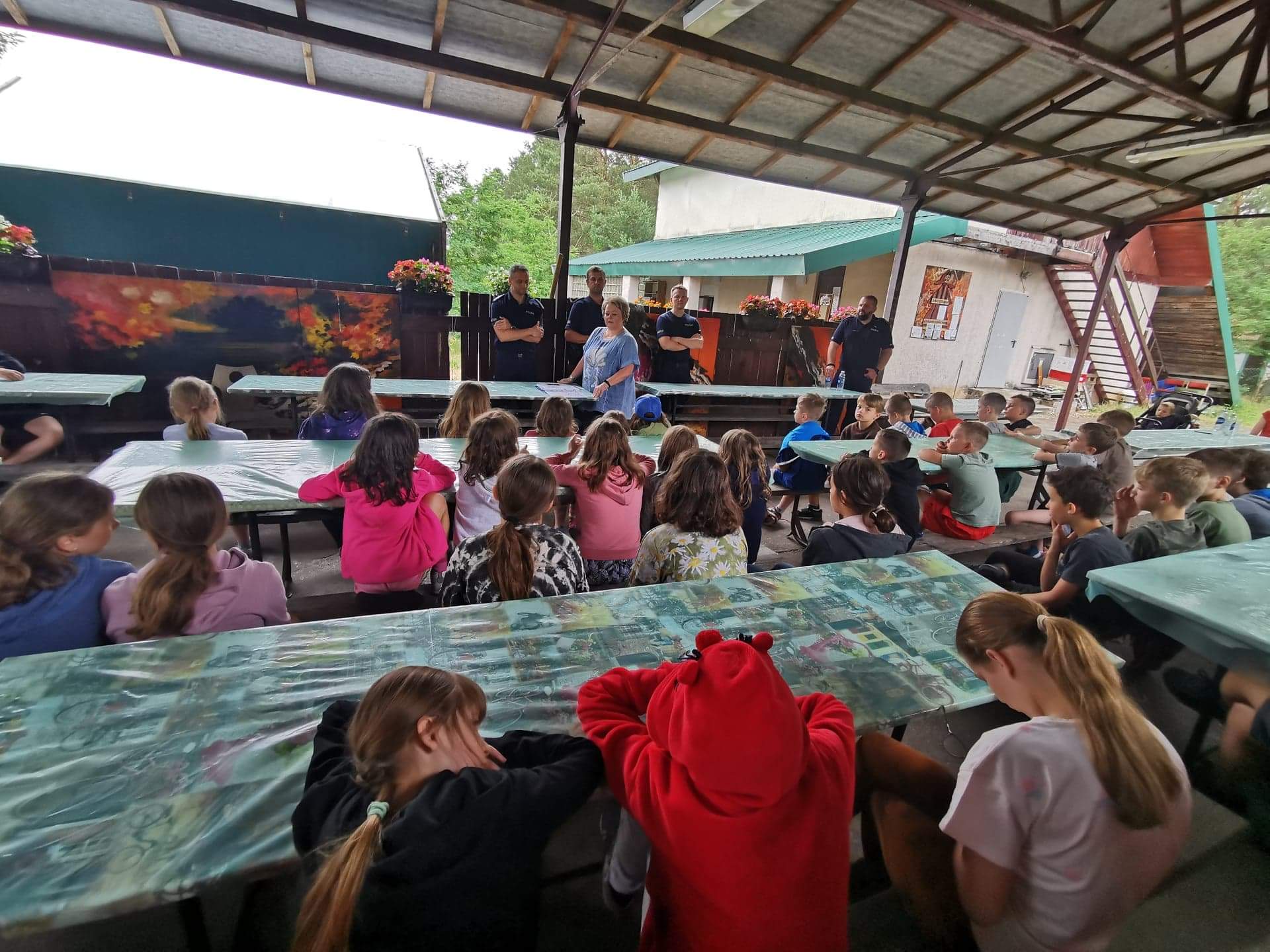 Dużo uwagi poświęcono chorobom odkleszczowym, zachowaniom podczas upałów, jak przetrwać upały, czym ugasić pragnienie, jak odróżnić udar cieplny od wyczerpania cieplnego. Zachęcano do stosowania kremów z filtrem, chronienia głowy i oczu przed słońcem oraz unikania ekspozycji na słońce w godzinach 11.00 – 15.00. Młodzież starsza mogła wysłuchać informacji na temat uzależnień w tym dopalaczy, narkotyków, alkoholu i papierosów. Podczas spotkania obecni byli również funkcjonariusze z Powiatowej Komendy Policji w Starachowicach, którzy dzielą się swoja wiedzą z uczestnikami Akcji Lato 2022.