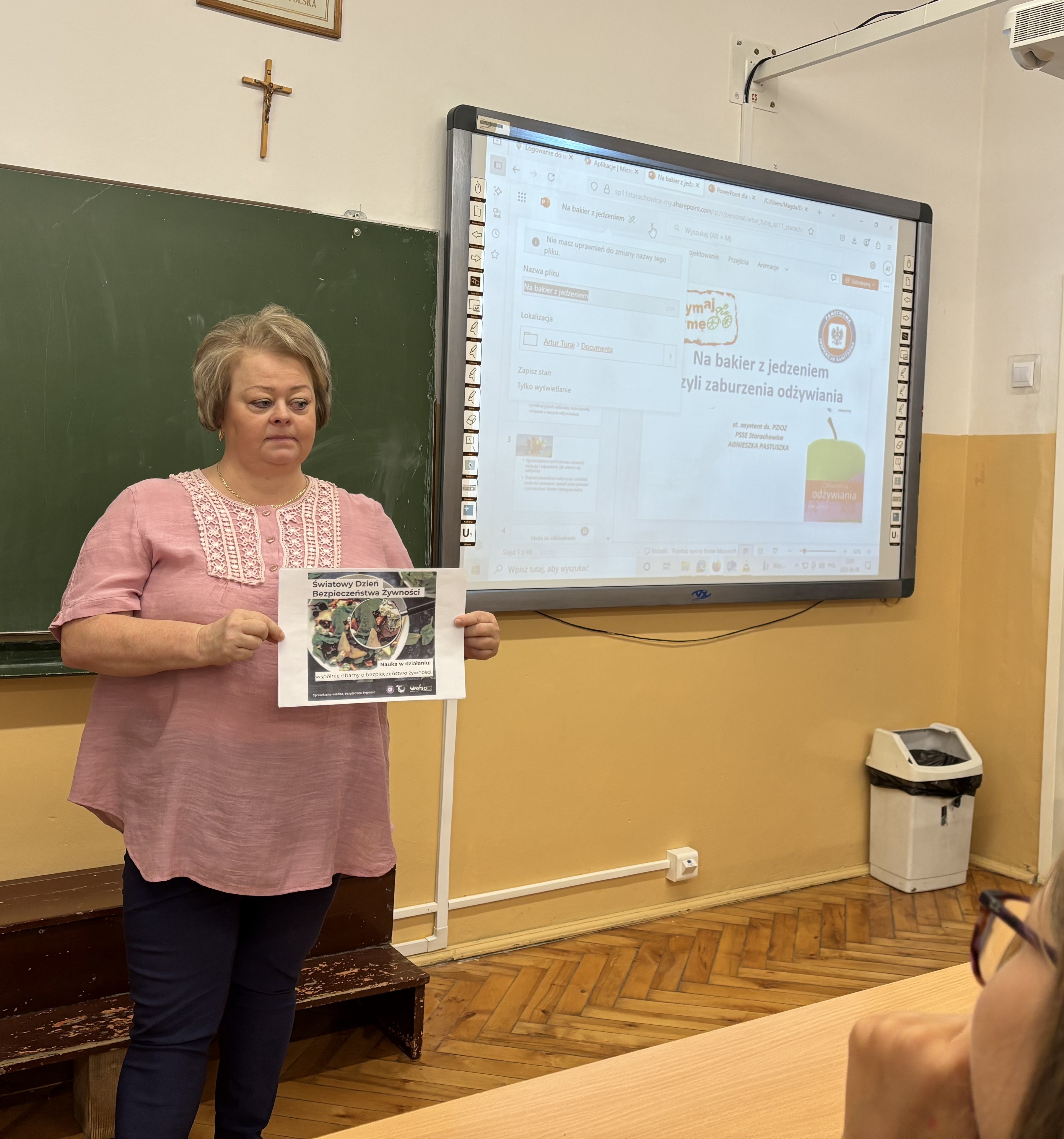 Uczniom przedstawiono wykład multimedialny „Żywność i twoje zdrowie”, oraz „Na bakier z jedzeniem, czyli zaburzenia odżywiania”. Szczegółowo omówiono definicję zdrowia i czynniki warunkujące zdrowie, zaburzenia odżywiania w tym – anoreksja - bulimia - otyłość. Dokonano analizy powikłań w/w chorób, oraz korzyści zdrowotnych płynących z regularnej aktywności fizycznej. Podkreślono iż odżywianie jest ważną sferą w życiu człowieka. W drugiej części spotkania przedstawiono uczniom zagadnienia związane z trwającą kampanią EFSAz#Safe2Eat wskazując, iż jest to inicjatywa skierowana do konsumentów, mająca na celu podniesienie ich świadomości na temat zagrożeń związanych z nieprawidłowym obchodzeniem się z żywnością. Pokazano jak kampania promuje m.in. zasady higieny podczas przygotowywania posiłków, właściwe przechowywanie produktów oraz unikanie ryzyka skażenia bakteriami i innymi patogenami.