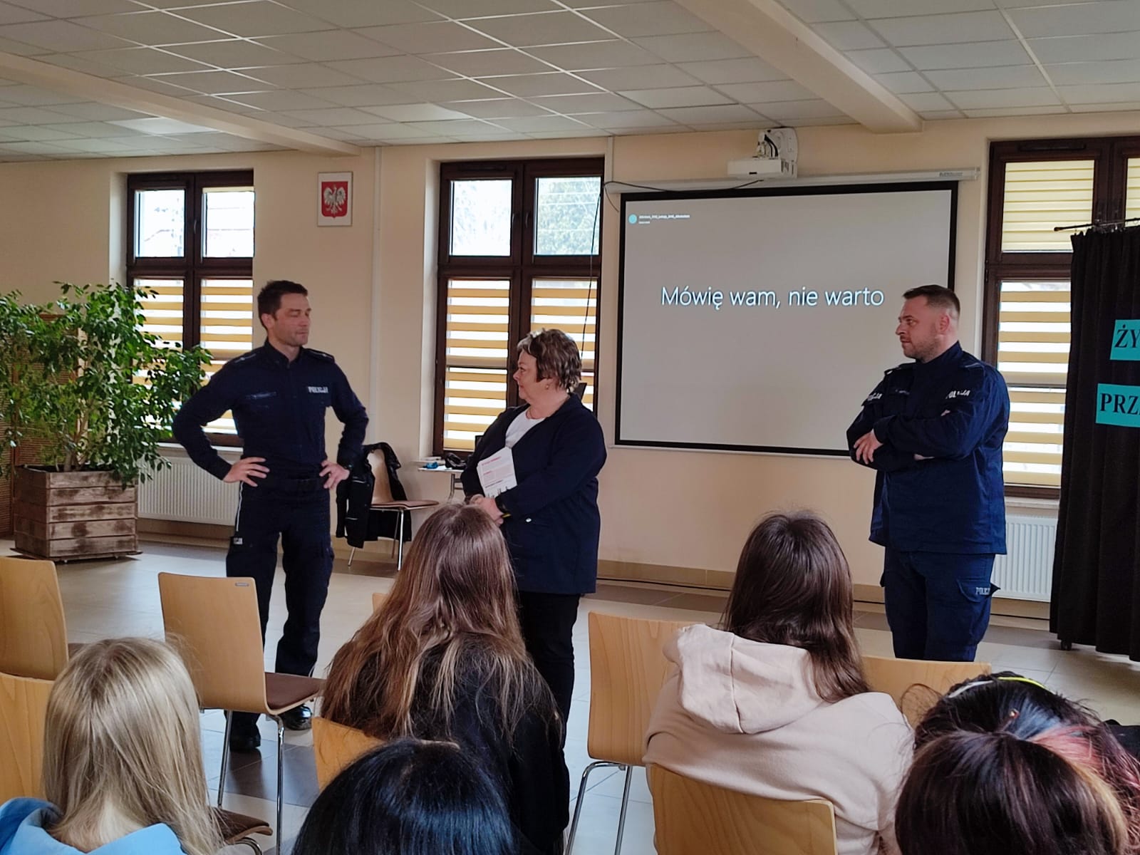 Podczas wykładu poruszono zagadnienia związane ze szkodliwym działaniem substancji psychoaktywnych, alkoholu, papierosów, e-papierosów i napojów energetycznych. Przedstawiono mechanizm uzależnienia, podkreślono szkodliwość działania substancji psychoaktywnych na zdrowie i rozwój młodych ludzi. Zaprezentowano film edukacyjny „MÓWIĘ WAM – NIE WARTO” poparty wypowiedziami ekspertów, oraz osób uzależnionych. Chętni uczniowie przy użyciu alkogogli testowali zaburzenia funkcjonowania zmysłów po spożyciu alkoholu. Na zakończenie odbyła się dyskusja podczas której uczniowie wyrazili swoje opinie, wrażenia ze spotkania i przemyślenia. Każdy otrzymał materiały edukacyjne dotyczące profilaktyki uzależnień.