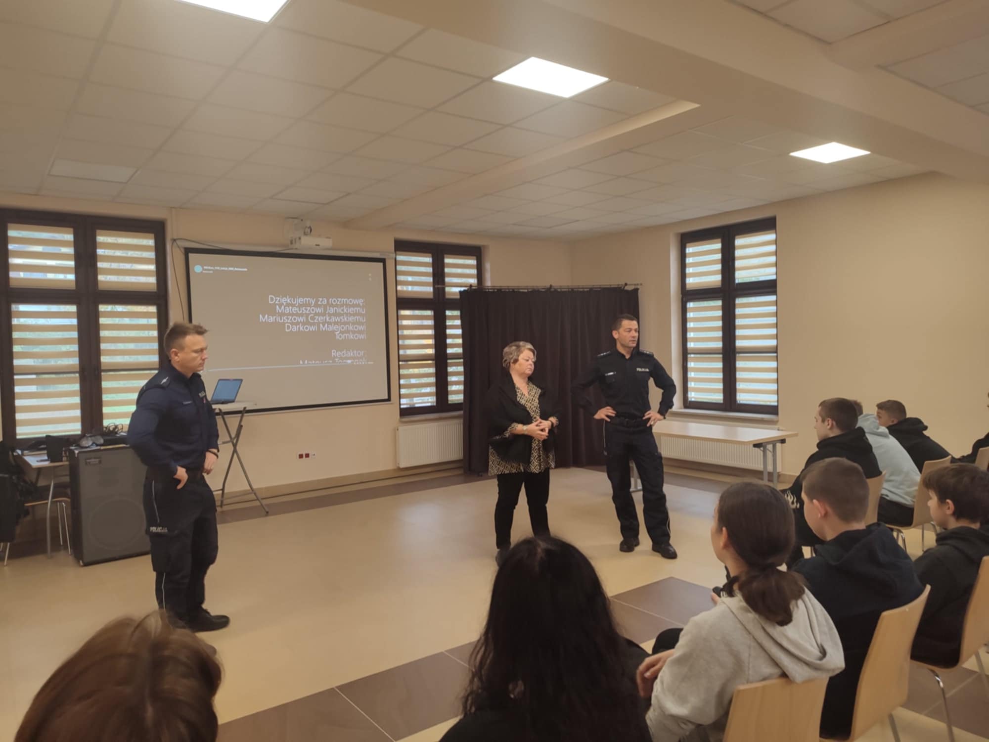 Dnia 15 października 2024r. przedstawiciele Powiatowej Stacji Sanitarno-Epidemiologicznej w Starachowicach oraz Komendy Powiatowej Policji w Starachowicach przeprowadzili cykl spotkań edukacyjnych dotyczących profilaktyki uzależnień pod hasłem „MŁODZIEŻ BEZ UZALEŻNIEŃ”.