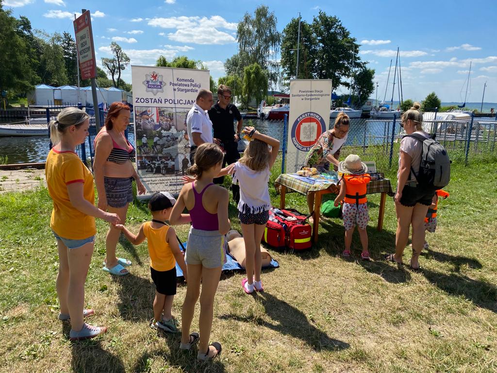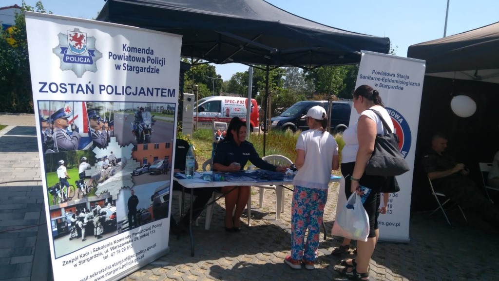 W czerwcu i lipcu przedstawiciel Powiatowej Stacji Sanitarno – Epidemiologicznej w Stargardzie, Policjanci Komendy Powiatowej Policji w Stargardzie oraz żołnierze Brygady Wsparcia Dowodzenia WKPW, prowadziła stoiska profilaktyczne na plaży jeziora w Marianowie, na plaży jeziora Miedwiem, przy Ośrodku Sportu i Rekreacji w Stargardzie oraz na Rynku Staromiejskim w Stargardzie, gdzie przypominano zasady bezpiecznego wypoczynku podczas wyczekiwanych przez dzieci i młodzież wakacji. Uczulano przed kąpielami w niestrzeżonych miejskich, przed skokami do wody na tzw. główkę. Omawiano również m.in. profilaktykę od kleszczowego zapalenia mózgu, boreliozy, zatruć pokarmowych, promowano aktywność fizyczną, dbanie o higienę osobistą, spędzanie wolnego czasu na świeżym powietrzu bez telefonu, tabletów, komputerów czy telewizora Dzieci bardzo chętnie uczestniczyły w loterii zagadkowej gdzie mogły sprawdzić się z wiedzy na temat bezpieczeństwa, obejrzeć pokaz udzielania pierwszej pomocy czy poznać obowiązki psa przewodnika. Stoiska cieszyły się bardzo dużym zainteresowaniem a dzieci i młodzież chętnie podejmowały rozmowę na temat bezpiecznego wypoczynku.