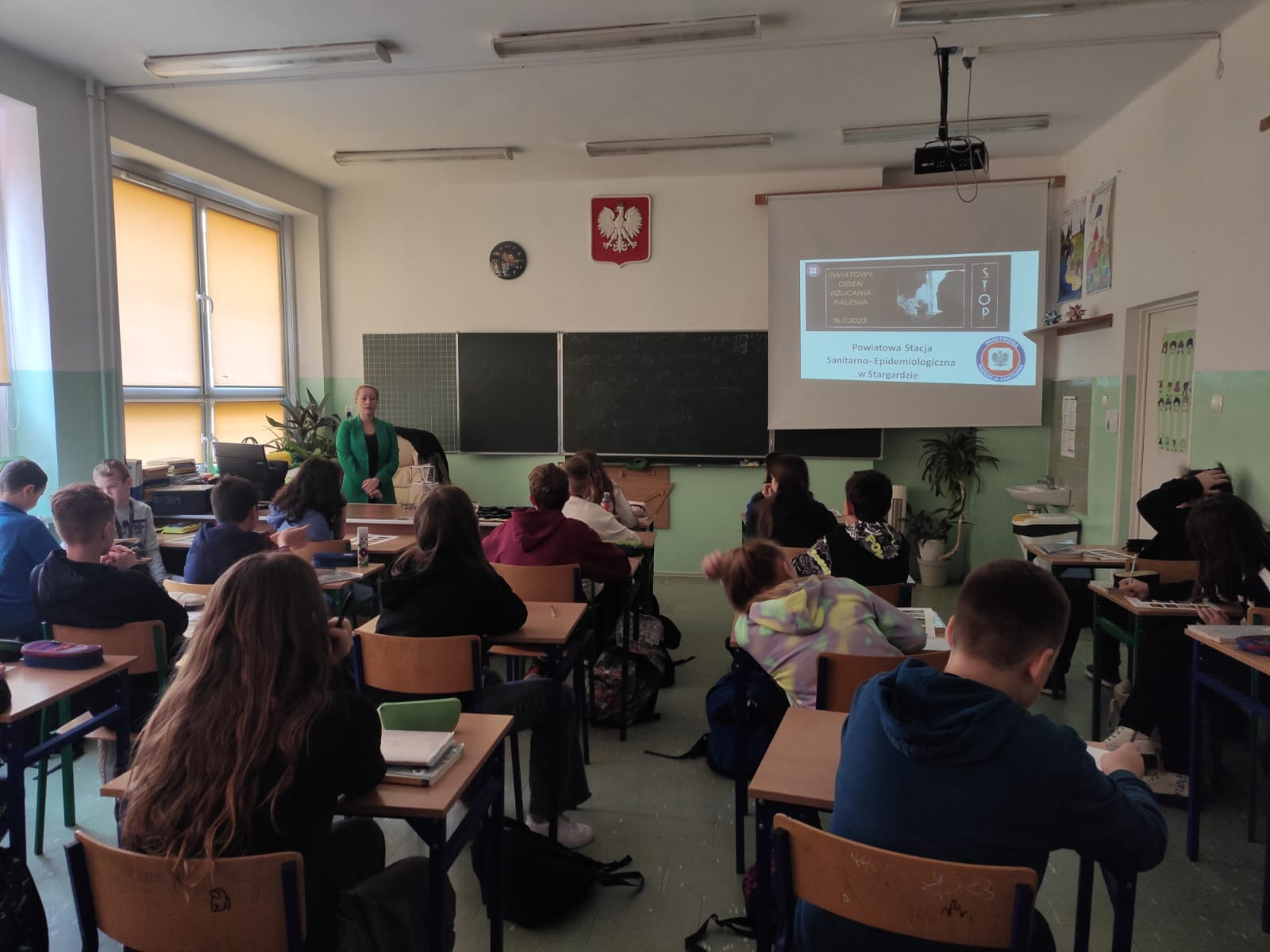 W związku z rozpoczęciem obchodów Światowego Dnia Rzucania Palenia pracownik Oświaty Zdrowotnej i Promocji Zdrowia Powiatowej Stacji Sanitarni- Epidemiologicznej w Stargardzie przeprowadził prelekcję dot. profilaktyki palenia wyrobów nikotynowych skierowanych do starszych klas szkół podstawowych na terenie powiatu stargardzkiego.