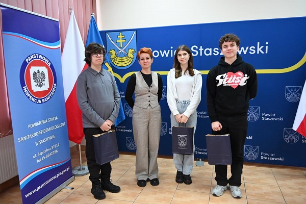 W dniu 13.01.2026r w Starostwie Powiatowym w Staszowie przeprowadzono II etap- finałowy Powiatowego Konkursu wiedzy o HIV /AIDS. Konkurs ogłosiła w ramach obchodów Światowego Dnia AIDS 2025r Powiatowa Stacja Sanitarno-Epidemiologiczna w Staszowie wspólnie ze Starostwem Powiatowym w Staszowie. Patronat honorowy nad konkursem objął Starosta Staszowski Pan Romuald Zgrzywa. Konkurs skierowany był do uczniów wszystkich szkół ponadpodstawowych w powiecie staszowskim.