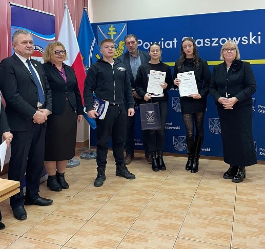 Wszyscy uczestnicy otrzymali dyplomy, nagrody książkowe oraz upominki z rąk Starosty Staszowskiego Romuald Zgrzywa, Przewodniczącej Rady Powiatu Jolanty Wójtowicz i Wiceprzewodniczącej Rady Powiatu Anny Kosowicz.