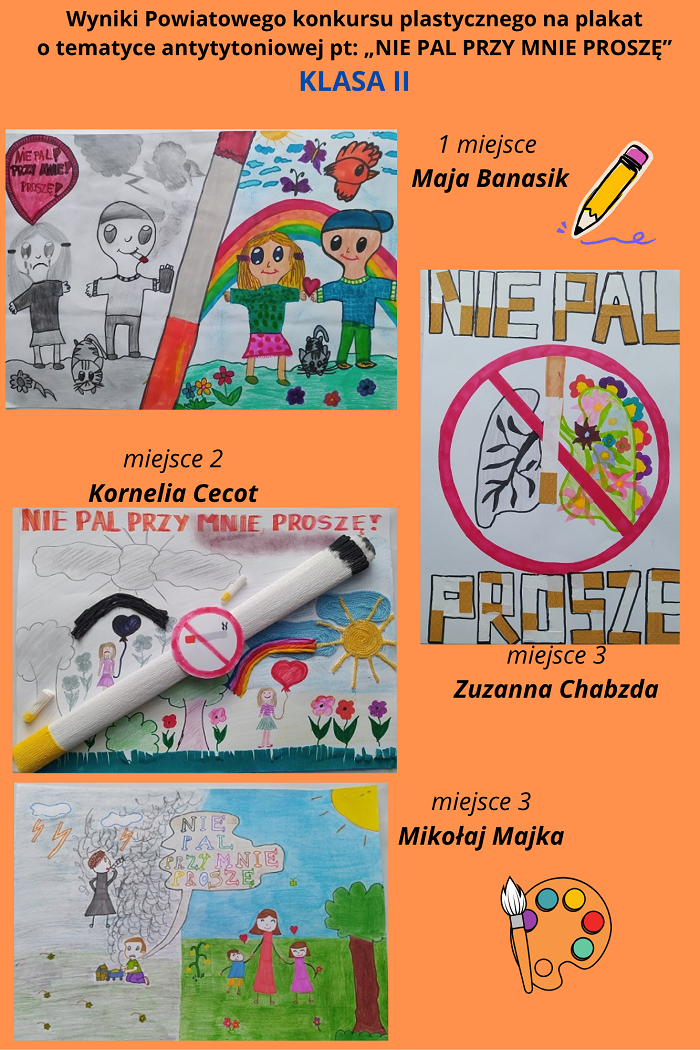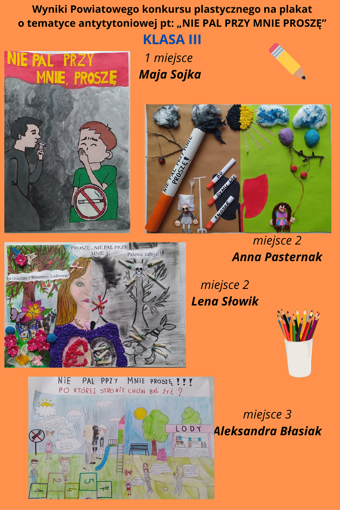 Wyniki Powiatowego konkursu plastycznego na plakat o tematyce antytytoniowej pt: NIE PAL PRZY MNIE PROSZĘ organizowanego w roku szkolnym 2024/2025