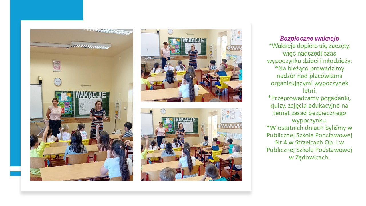 *Przeprowadzamy pogadanki, quizy, zajęcia edukacyjne na temat zasad bezpiecznego wypoczynku.
