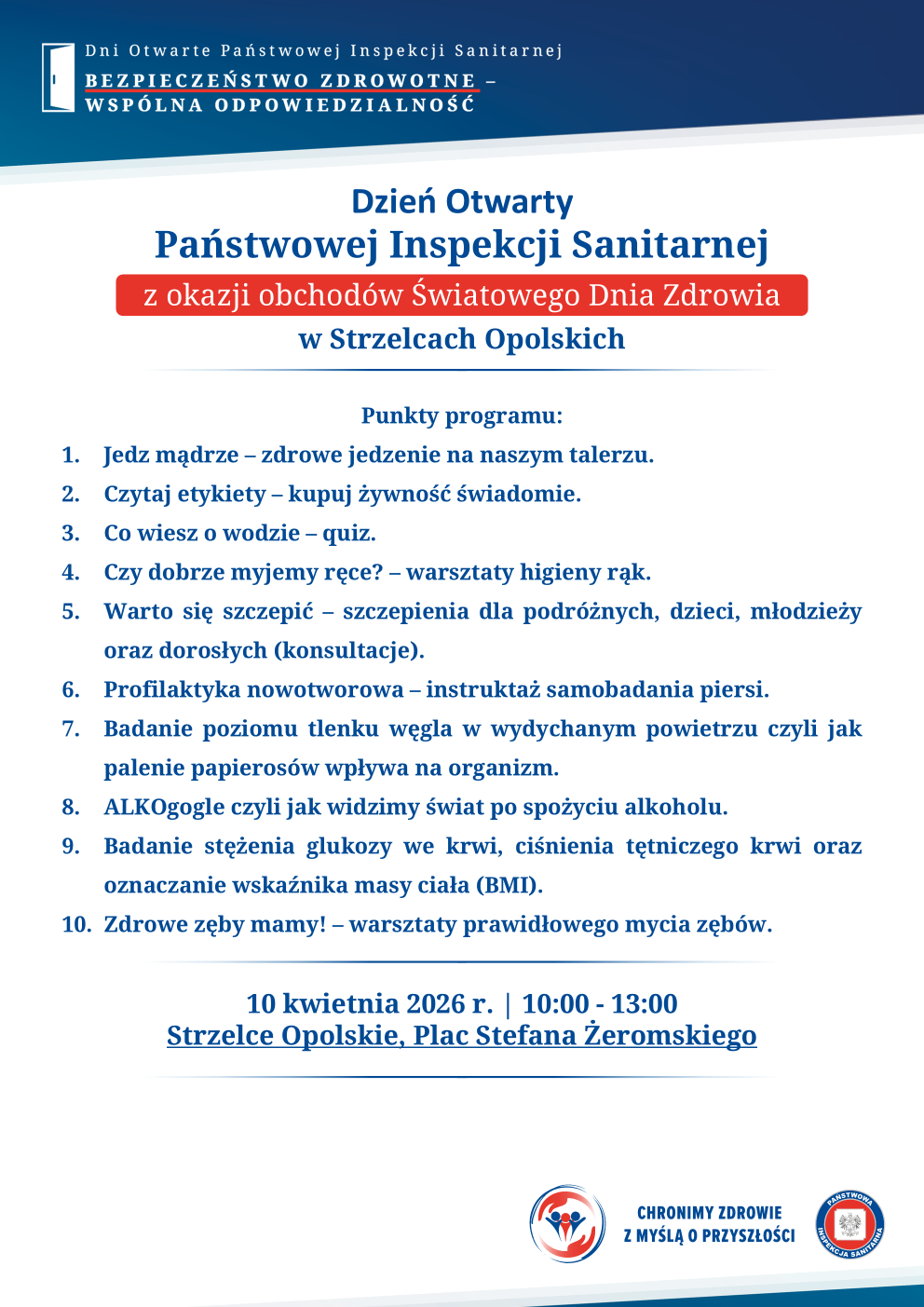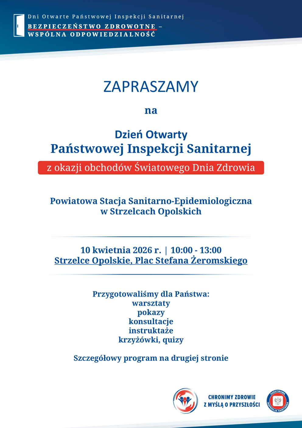 Zapraszamy na Dzień otwarty Państwowej Inspekcji Sanitarnej z okazji obchodów światowego dnia zdrowia.
