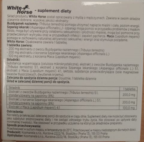 W wyniku badań przeprowadzonych na zlecenie Państwowej Inspekcji Sanitarnej stwierdzono obecność syldenafilu - niezadeklarowanej aktywnej farmakologicznie substancji w partii suplementu diety White Horse. Substancja ta nie może występować w żywności, w tym w suplementach diety, ze względu na jej działanie medyczne. Spożycie produktu wiąże się z ryzykiem dla zdrowia.