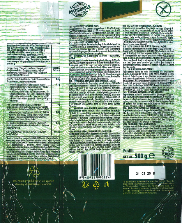 Nazwa produktu: Sam Mills GLUTEN FREE Pasta d'oro 100% Corn Pasta Fusilli