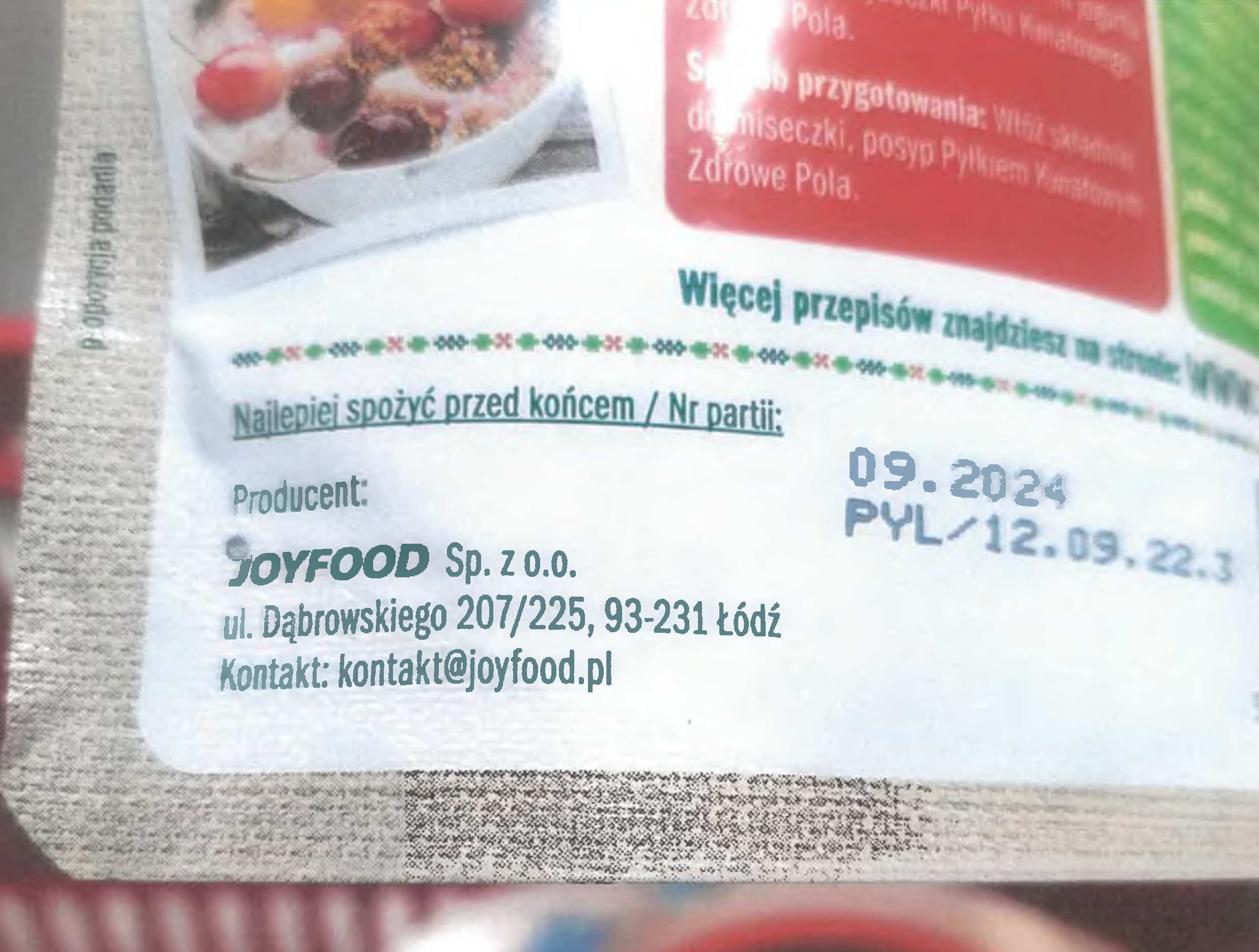 Producent: JoyFood Sp. z o.o. ul. Dąbrowskiego 207/225, 93-231 Łódź