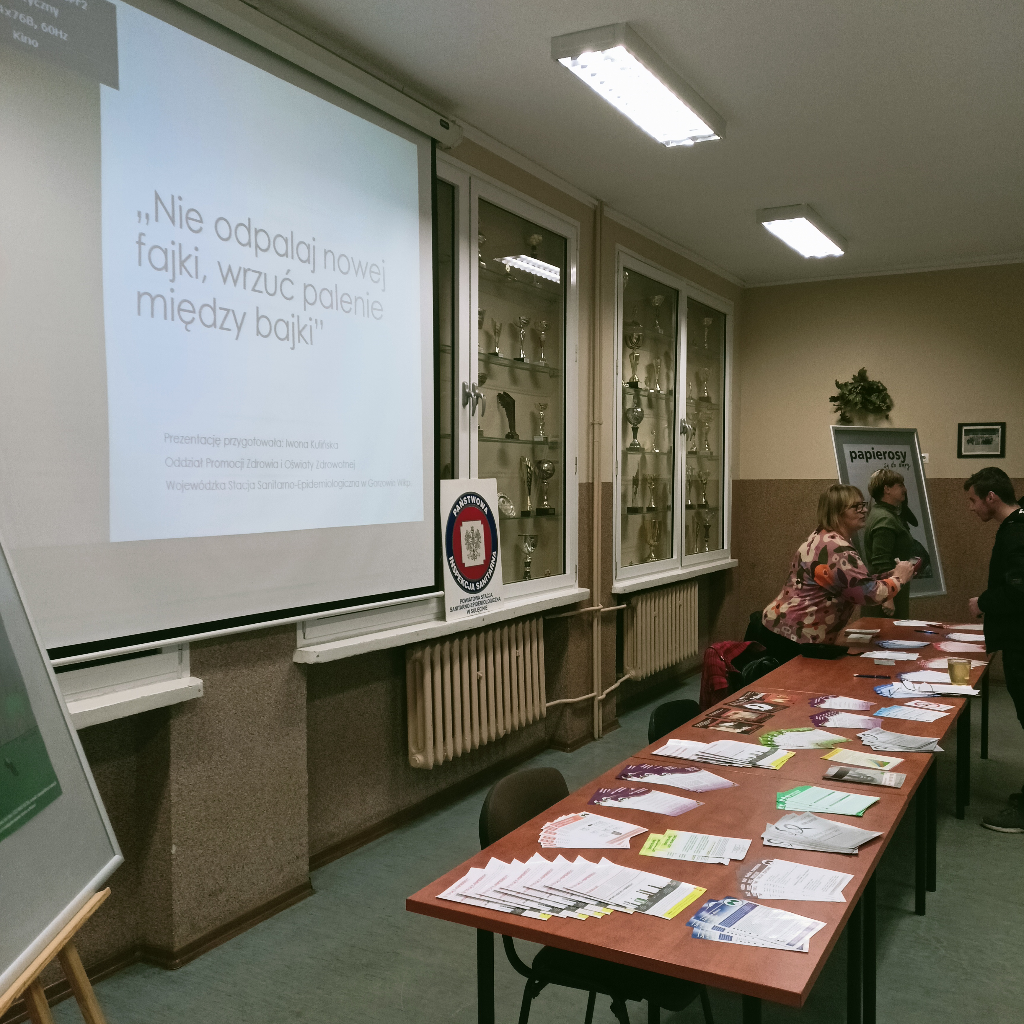 w #ZespolSzkolLicealnychiZawodowychwSulęcinie w ramach obchodów Światowego Dnia Rzucania Palenia Tytoniu spotkanie inaugurujące kampanię edukacyjną „Nie odpalaj nowej fajki, wrzuć palenie między bajki”, która ma na celu zwrócenie uwagi dzieciom i młodzieży na negatywne konsekwencje zdrowotne związane z paleniem tytoniu, ze szczególnym uwzględnieniem szkodliwości korzystania z e-papierosów.
