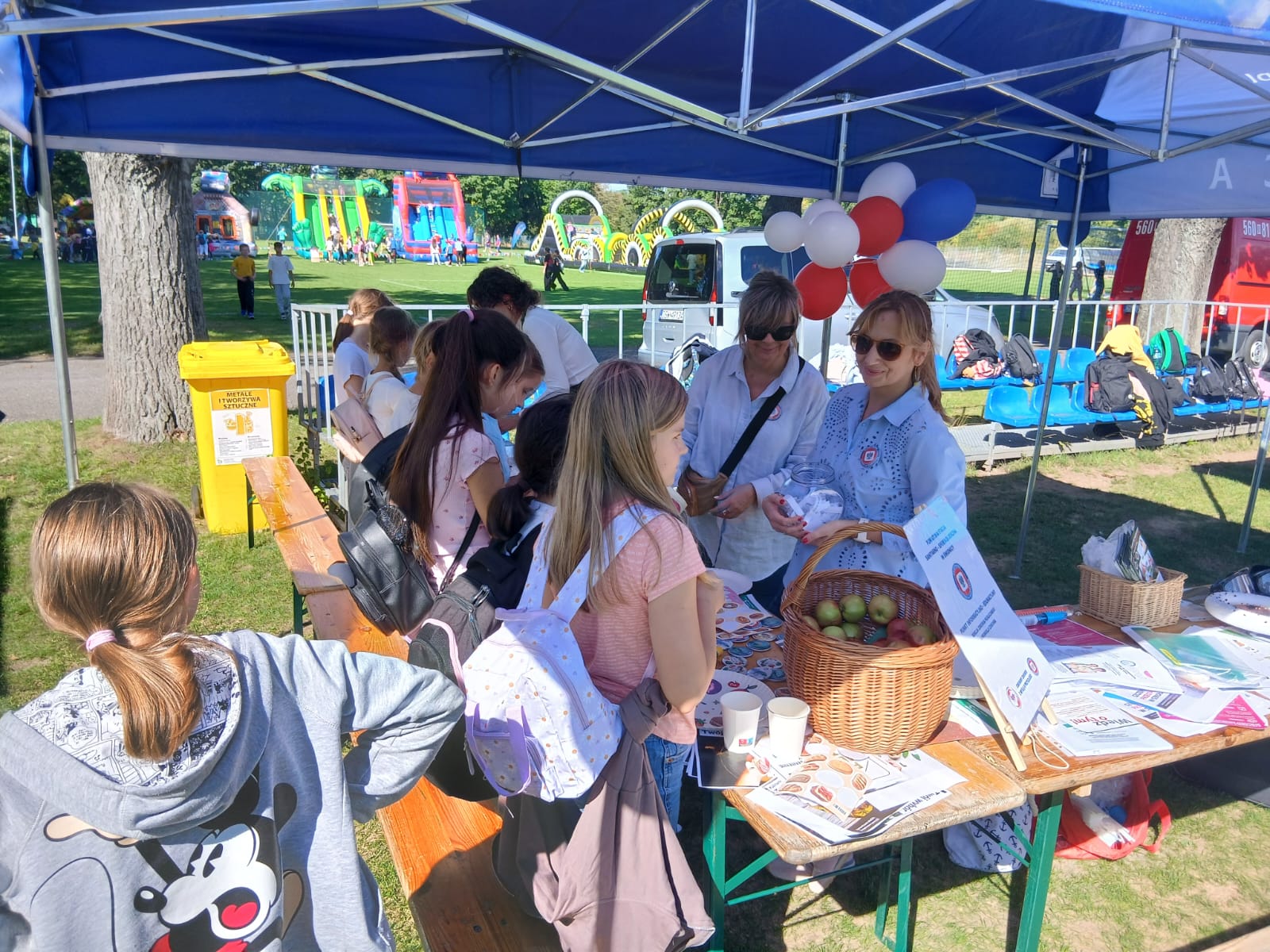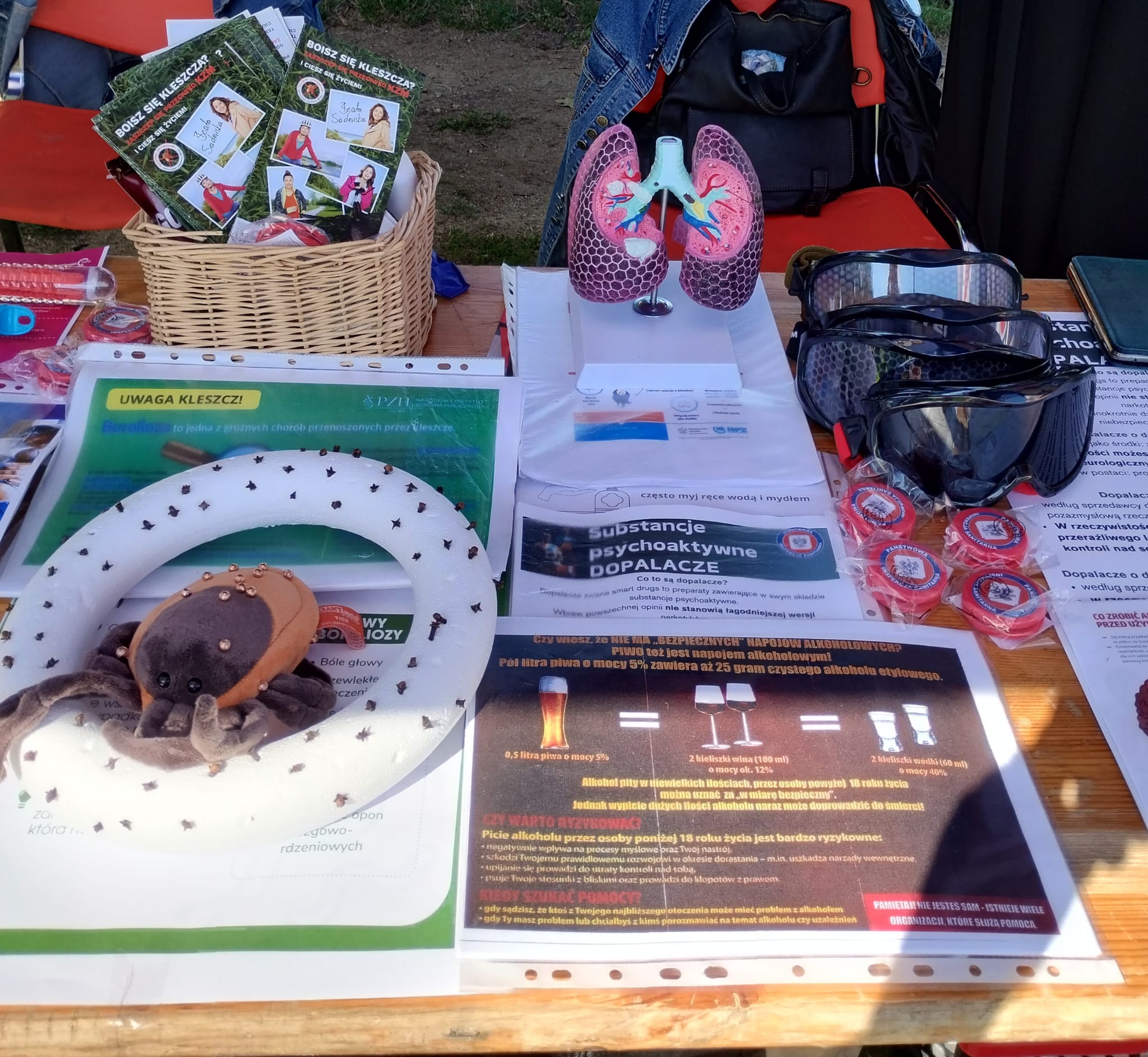 Sekcja Zdrowia Publicznego i Promocji Zdrowia Powiatowej Stacji Sanitarno-Epidemiologicznej w Świdnicy zorganizowała i prowadziła punkt informacyjno-edukacyjny dla społeczności lokalnej oraz uczestników ww. wydarzenia. W punkcie prowadzono działania edukacyjne i promocyjne z zakresu szeroko rozumianego zdrowia publicznego, w tym zdrowego stylu życia oraz profilaktyki chorób. Osoby, które odwiedzały nasz punkt zachęcano do szczepień, ponieważ w okresie jesienno-zimowym powinniśmy wszyscy zadbać o zdrowie swoje oraz najbliższych. Ponadto niektórzy rodzice odwiedzający stoisko dopytywali o szczepienia przeciw wirusowi brodawczaka ludzkiego (HPV). Można było dowiedzieć się jak substancje psychoaktywne wpływają na Ośrodkowy Układ Nerwowy (OUN) i naszą percepcję, wykonać ćwiczenia przy użyciu symulatorów -alko i narko-gogli, zobaczyć na modelu jak wyglądają płuca osoby zdrowej i osoby palącej papierosy, nauczyć się prawidłowego szczotkowania zębów przy użyciu modelu anatomicznego szczęki, po krótkim instruktażu wykonać ćwiczenie i na modelu spróbować prawidłowo "usunąć kleszcza", skomponować swój „talerz zdrowia”, odpowiedzieć na pytania zawarte w quizie, prowadziliśmy dystrybucje materiałów akcydensowych, dzięki którym odbiorcy naszych działań mogli poszerzyć swoją wiedzę na temat: zdrowego stylu życia, w tym prawidłowego odżywiania się, wpływu aktywności fizycznej na nasz organizm, higieny osobistej, w tym higieny jamy ustnej oraz rąk, profilaktyki chorób zakaźnych, odkleszczowych, substancji psychoaktywnych, grzybów, prowadzonych aktualnie kampanii, m. in. Europejskiego Urzędu ds. Bezpieczeństwa Żywności (EFSA) „Safe2Eat” oraz zainicjowanej przez Główny Inspektorat Sanitarny w Warszawie „Jesień bez infekcji”.
