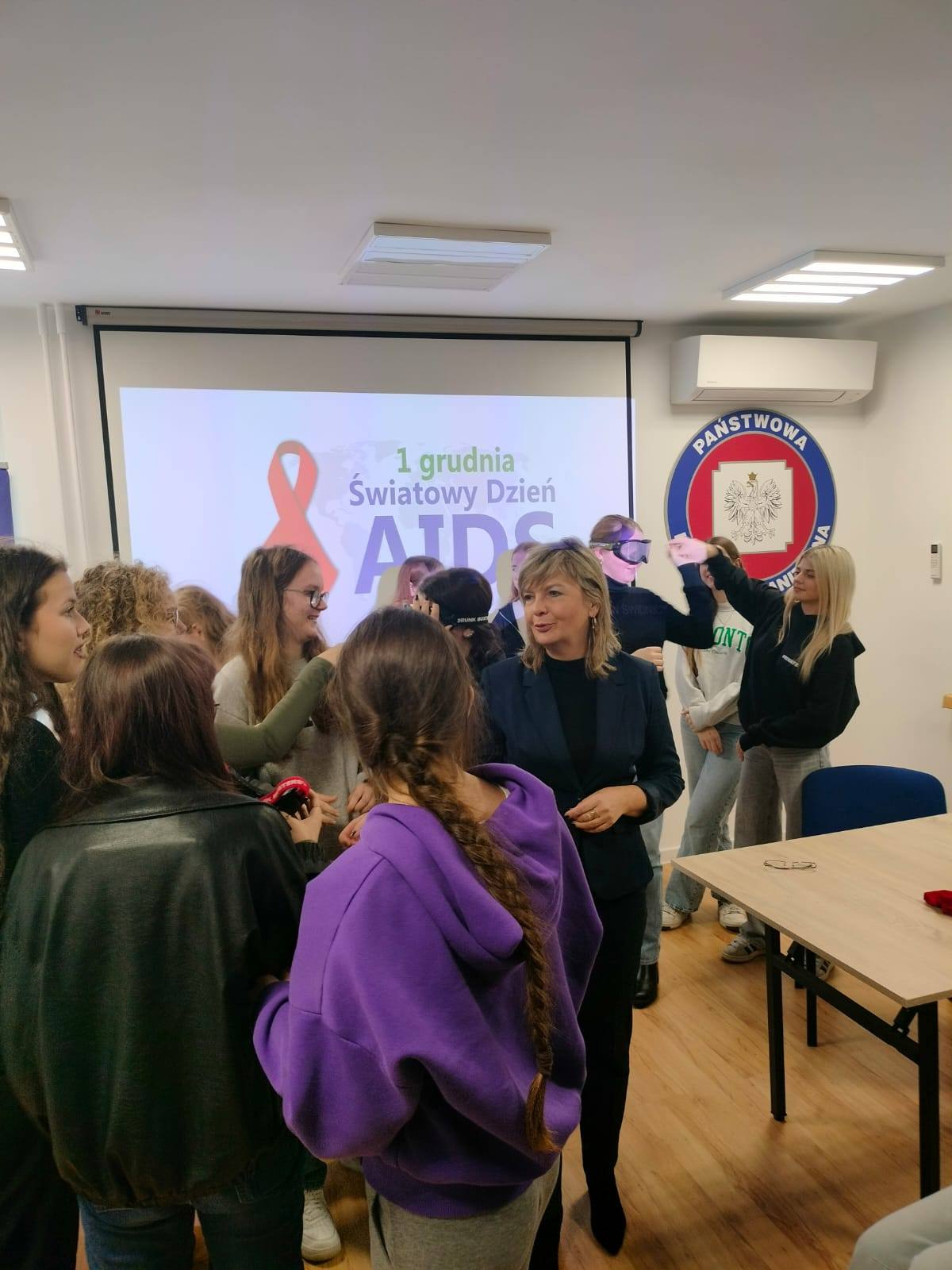 Uzupełnieniem zajęć edukacyjnych były warsztaty- ćwiczenia z wykorzystaniem symulatorów alko i narko-gogli, uczniowie mogli również wykorzystać zdobytą wiedzę teoretyczną w praktyce i dokonać oceny zgodności etykiety produktu z wymogami przepisów prawa, czy też odpowiedzieć na pytanie: Czy suplement diety to lek?, wyrób medyczny? a może żywność?, porozmawiać o korzyściach i zagrożeniach związanych z żywnością wzbogaconą, skorzystać z ulotek i broszur wyeksponowanych w zorganizowanym punkcie informacyjnym. Nie mogło również zabraknąć aktualnych tematów z zakresu zdrowia publicznego, czyli szczepień p. wirusowi brodawczaka ludzkiego (HPV) oraz obchodów "Światowego Dnia AIDS" w dniu 1 grudnia.