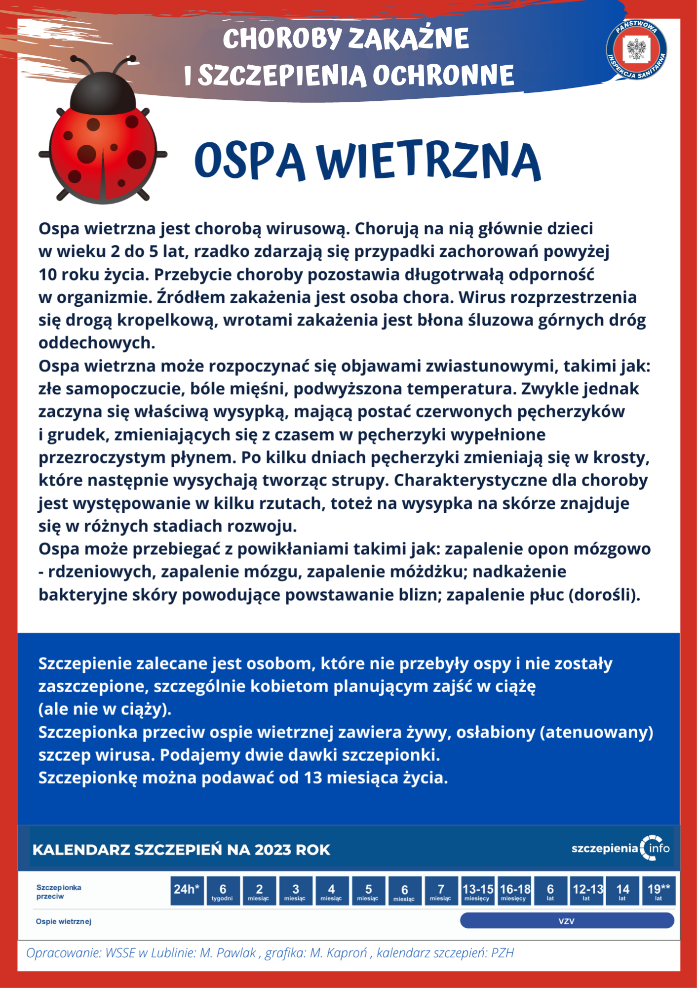 - O terminach innych szczepień obowiązkowych dziecka.