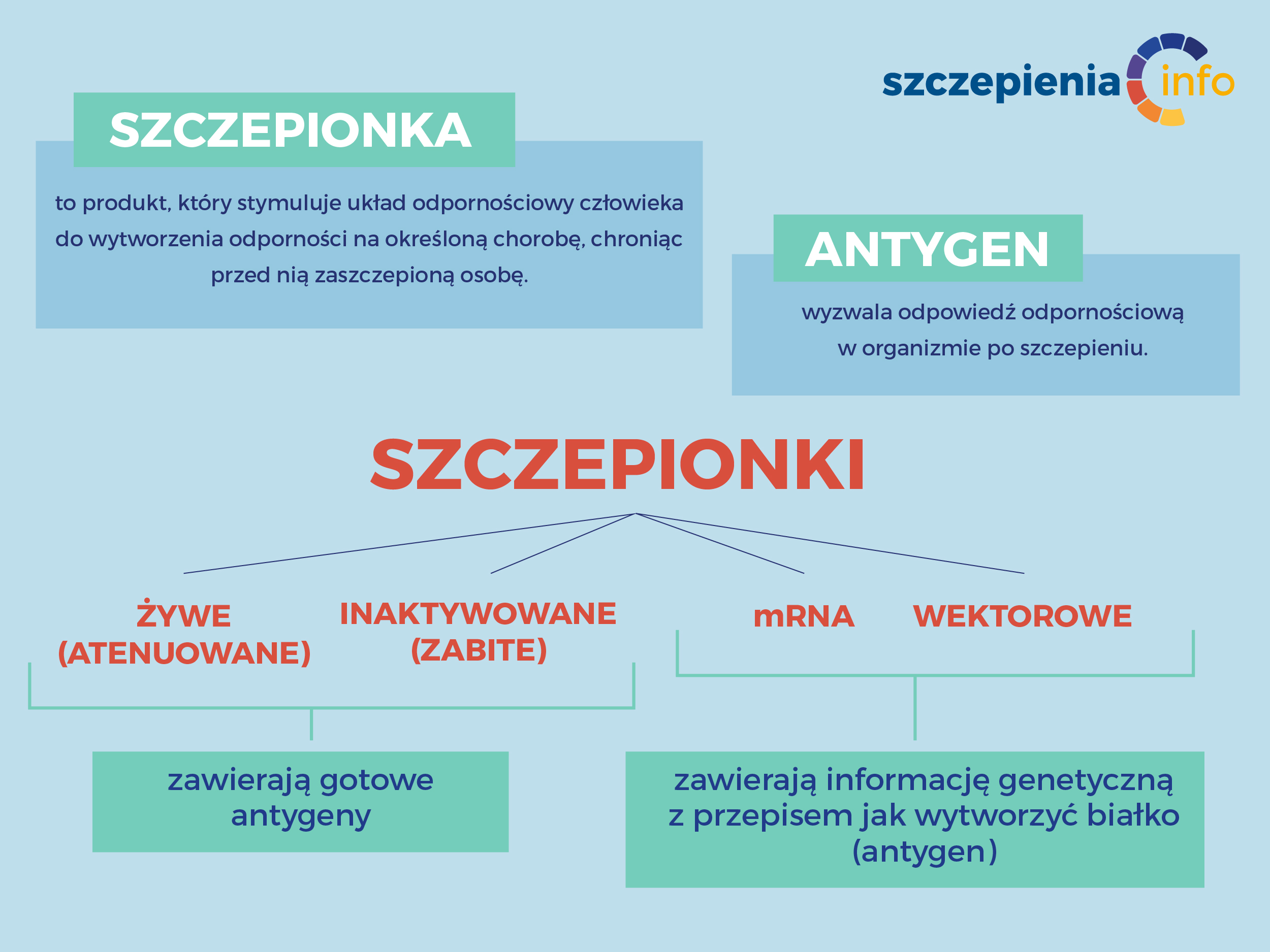 Szczepionki to produkty lecznicze podawane osobom zdrowym w celu ochrony przed chorobami zakaźnymi. Są to produkty pochodzenia biologicznego, zawierające antygeny zdolne do indukcji określonych procesów immunologicznych, warunkujących powstanie trwałej odporności bez wywoływania działań toksycznych.