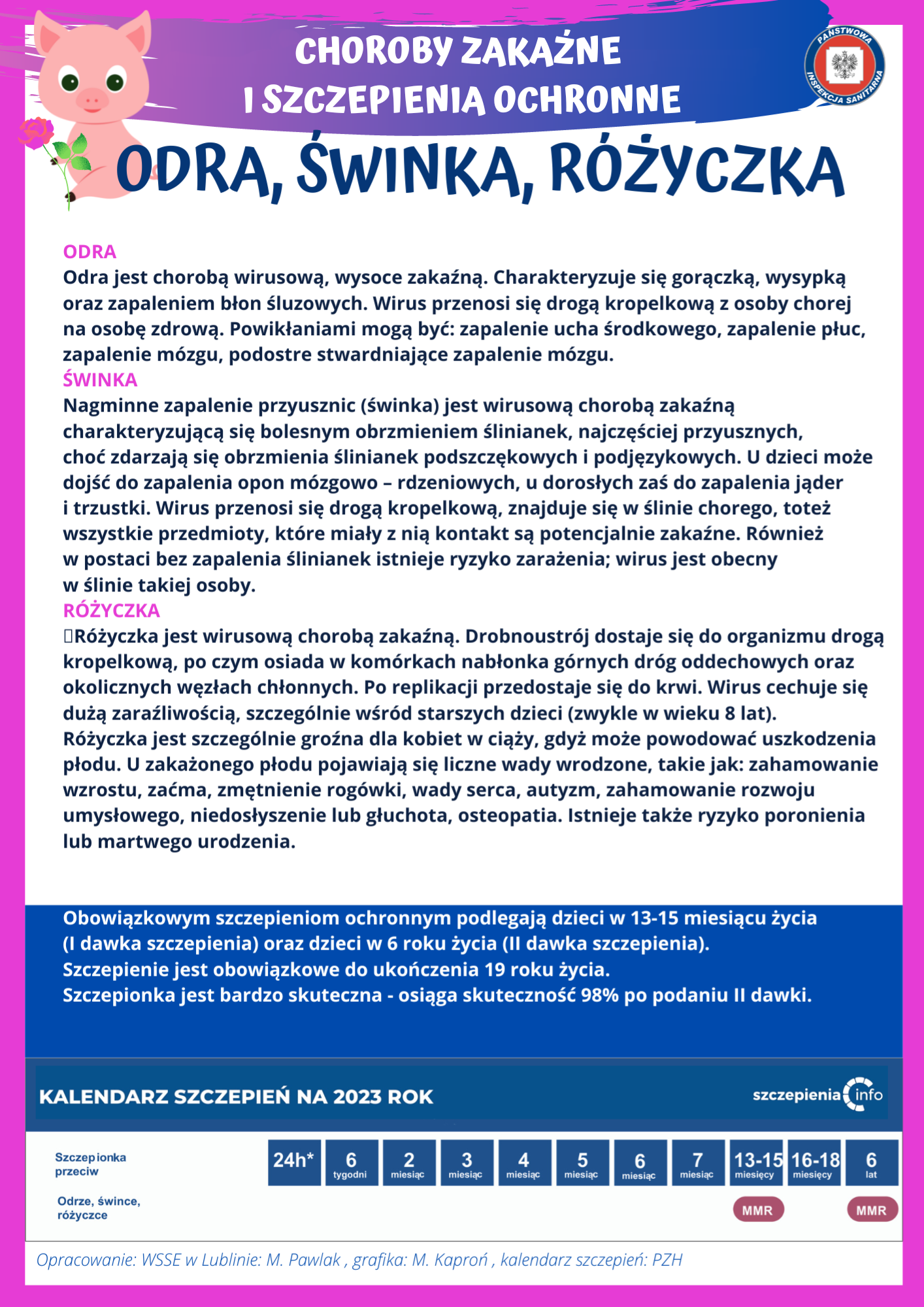 - podnoszenie świadomości potrzeby i prawa każdego dziecka do ochrony przed chorobami, którym można zapobiegać za pomocą szczepień ochronnych,