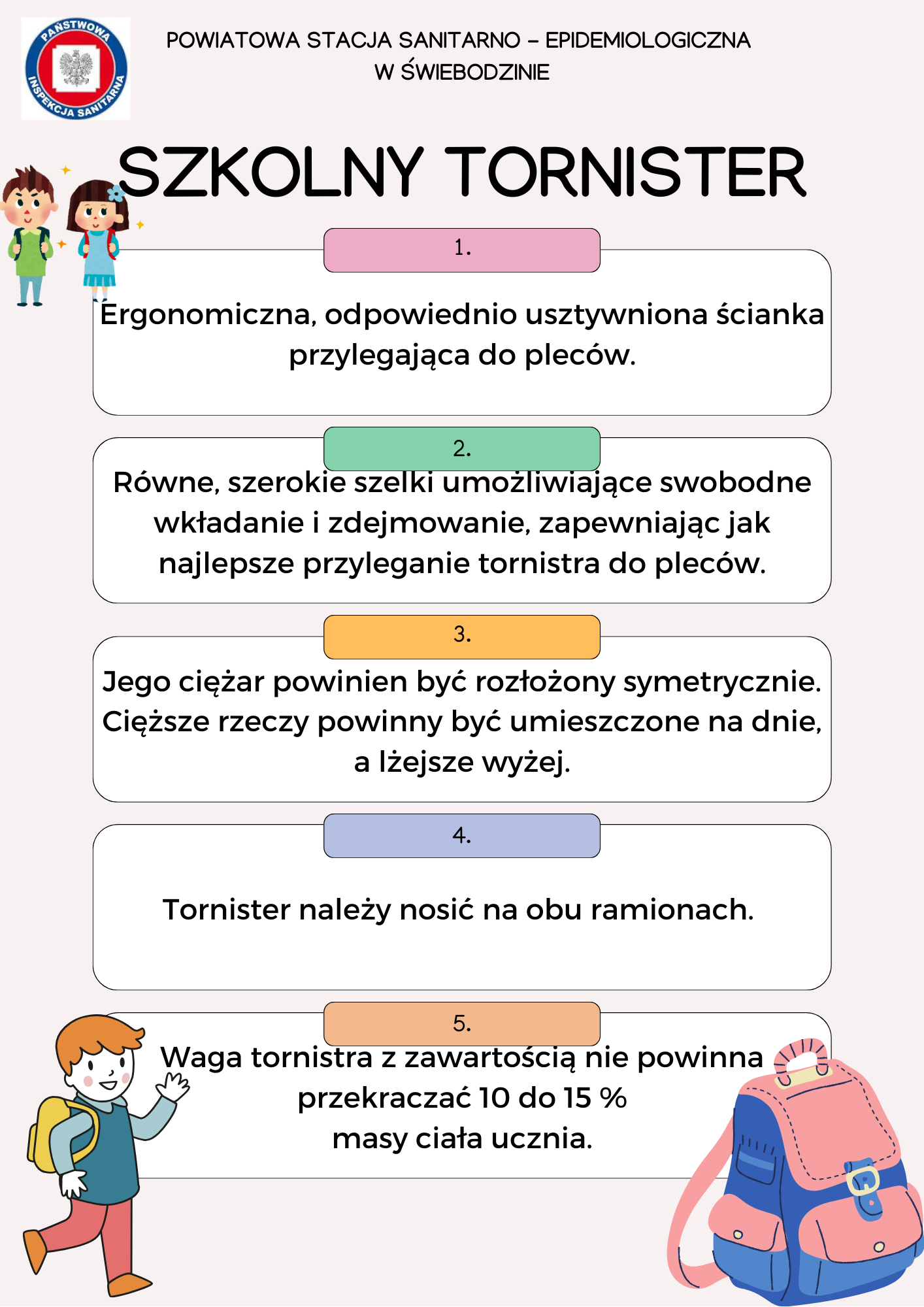 - zwróć uwagę, aby nosić tornister na obu ramionach.