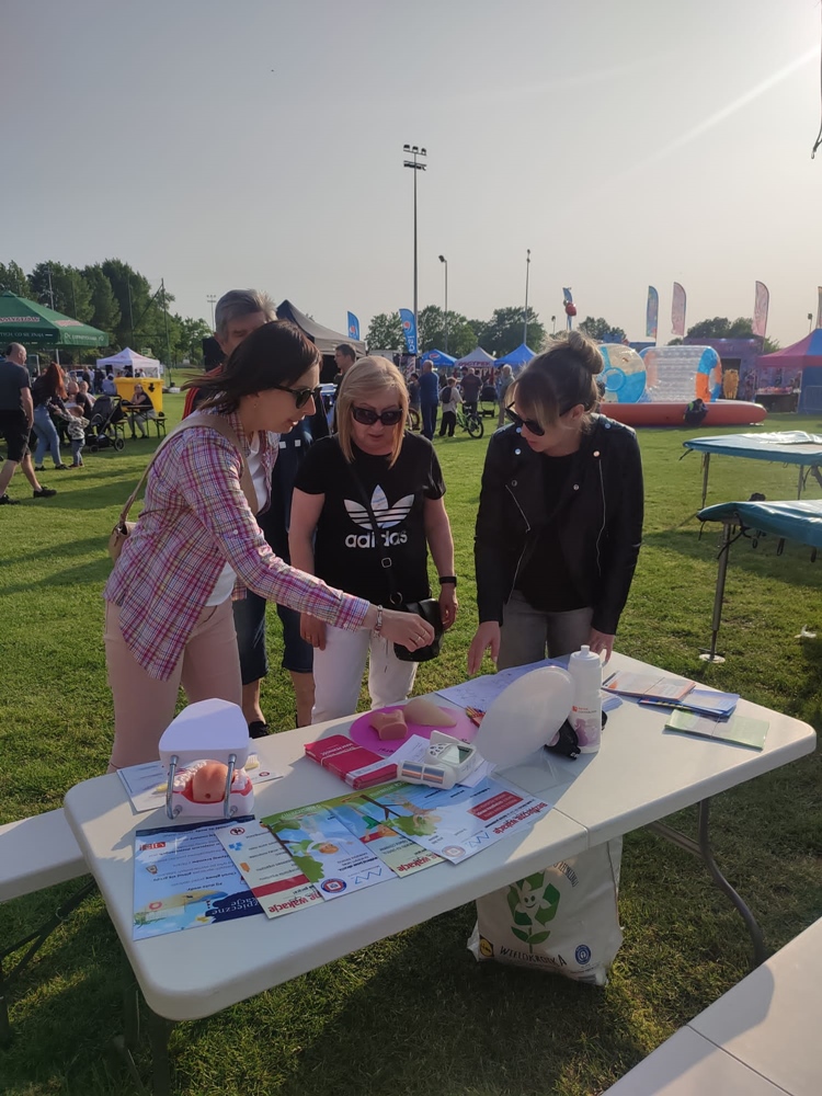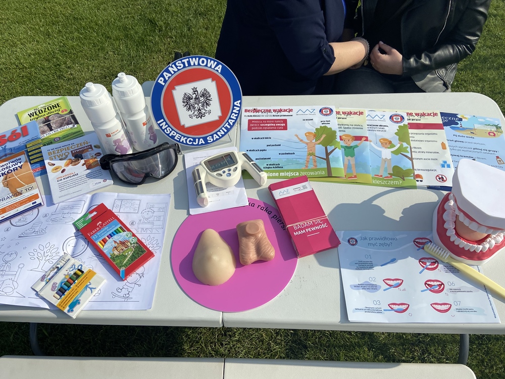 Punkt edukacyjny utworzony przez pracowników Powiatowej Stacji Sanitarno - Epidemiologicznej w Świebodzinie w trakcie imprezy masowej pod tytułem „Finał Dni Świebodzina”.