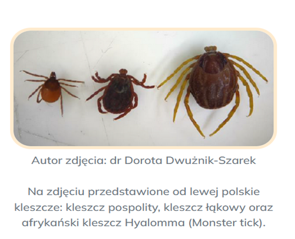 W ostatnich tygodniach potwierdzone zostały doniesienia o pojawieniu się na terenie Polski kleszczy afrykańskich, zwanych inaczej wędrownymi z rodzaju Hyalomma sp.