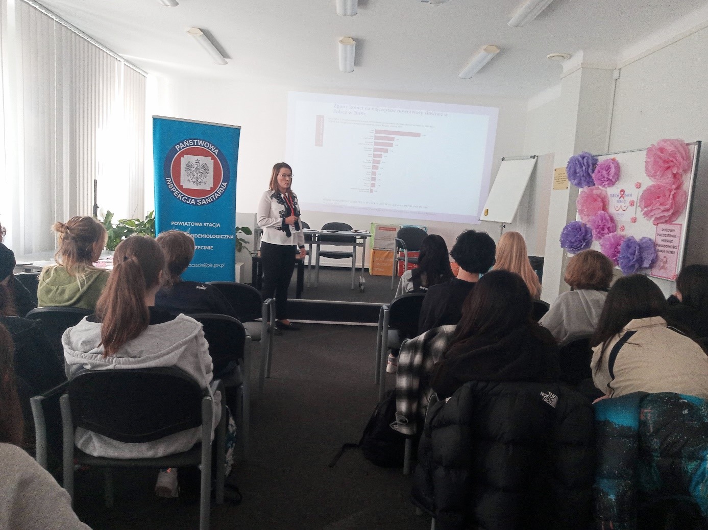 W miesiącu październiku 2022r pracownicy sekcji Oświaty Zdrowotnej i Promocji Zdrowia z Powiatowej Stacji Sanitarno-Epidemiologicznej w Szczecinie Magdalena Stachel i Izabela Wojtal przeprowadziły szereg wykładów dla kobiet z zakresu profilaktyki raka piersi w Szkole Podstawowej nr 41, Szkole Podstawowej nr 41, Przedszkolu nr 67, 60, 30, 37 Technikum Kreatywnym , Narodowym Funduszu Zdrowia w Szczecinie oraz podczas szkoleń dla nauczycieli wychowania przedszkolnego , Szkół Podstawowych oraz nauczycieli Szkół Ponadpodstawowych. Wykłady dodatkowo wzbogacone były warsztatami podczas których uczestniczki mogły zapoznać się z zasadami i technikami samobadania piersi na fantomach.