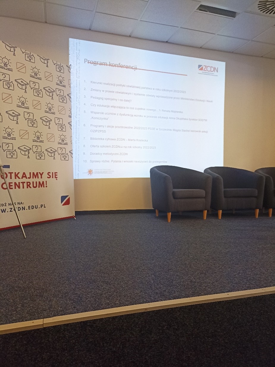 W dniu 25.08.2022r. podczas konferencji metodycznych dla pedagogów w Zachodniopomorskim Centrum Doskonalenia Nauczycieli w Szczecinie kierownik sekcji Oświaty Zdrowotnej i Promocji Zdrowia mgr Magdalena Stachel z Powiatowej Stacji Sanitarno-Epidemiologicznej w Szczecinie wygłosiła wykłady na temat programów i akcji prozdrowotnych realizowanych w nadchodzącym roku szkolnym 2022/2023 przez PSSE w Szczecinie. Konferencja skierowana była do dyrektorów, pedagogów i nauczycieli pracujących w szkołach podstawowych i szkołach ponadpodstawowych na terenie Województwa Zachodniopomorskiego. Podczas konferencji przeprowadzono dystrybucję materiałów edukacyjnych. W obu spotkaniach wzięło udział 130 uczestników.