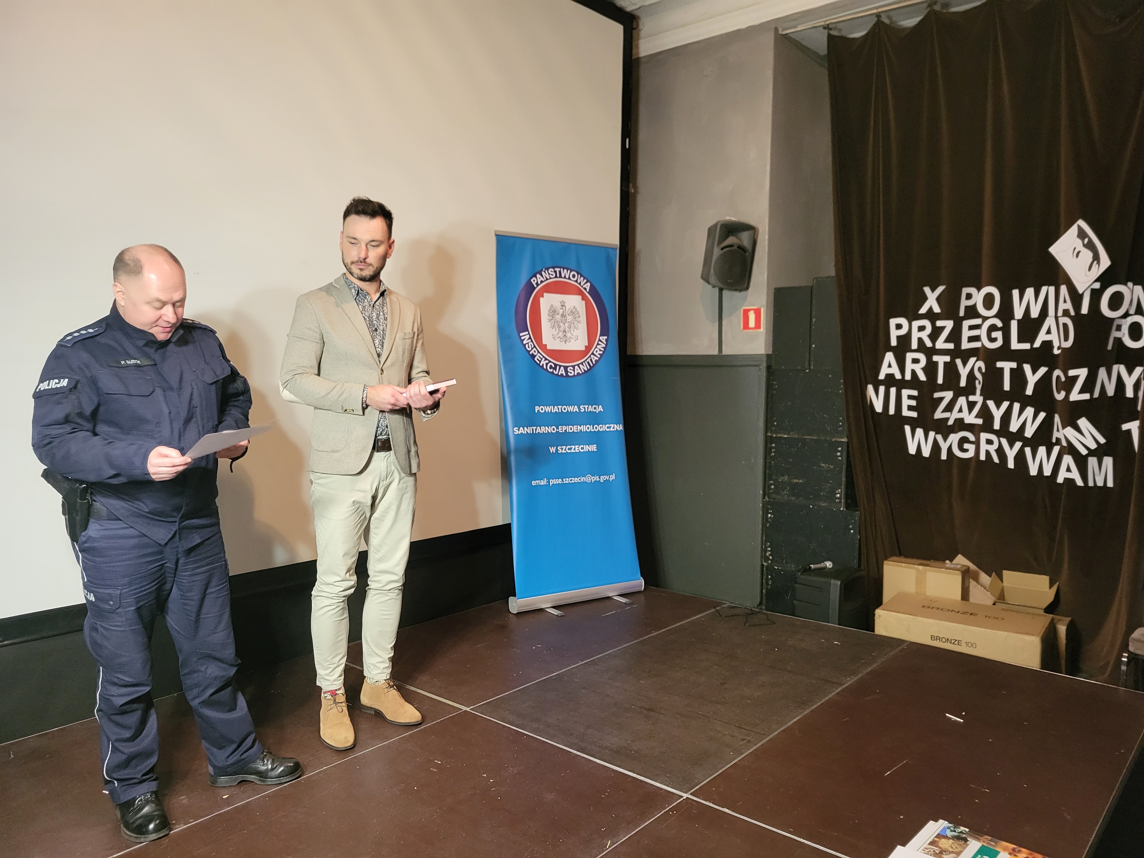 Dnia 07.12.2022r. w Szczecińskim Inkubatorze Kultury odbyła się finał XII edycji powiatowego konkursu małych form teatralnych „Nie zażywam – to wygrywam”. Młodzież zaprezentowała sztuki teatralne dotyczące konsekwencji zażywania substancji psychoaktywnych ze szczególnym uwzględnieniem dopalaczy (zatrucia ze skutkiem śmiertelnym, psychozy, choroby psychiczne, choroby somatyczne, uszkodzenia narządów tym CUN, samookaleczenia, próby samobójcze, wypadki, niechciana ciąża, zakażenie chorobami przenoszonymi drogą płciową, wypadki, agresja, przemoc). Młodzież za trud włożony w przygotowanie przedstawień teatralnych otrzymała nagrody książkowe ufundowane przez Dyrektora Wydziału Spraw Społecznych Urzędu Miasta Szczecin oraz dyplomy Państwowego Powiatowego Inspektora Sanitarnego w Szczecinie. W konkursie łącznie wzięło udział 120 uczniów z 7 szczecińskich placówek.
