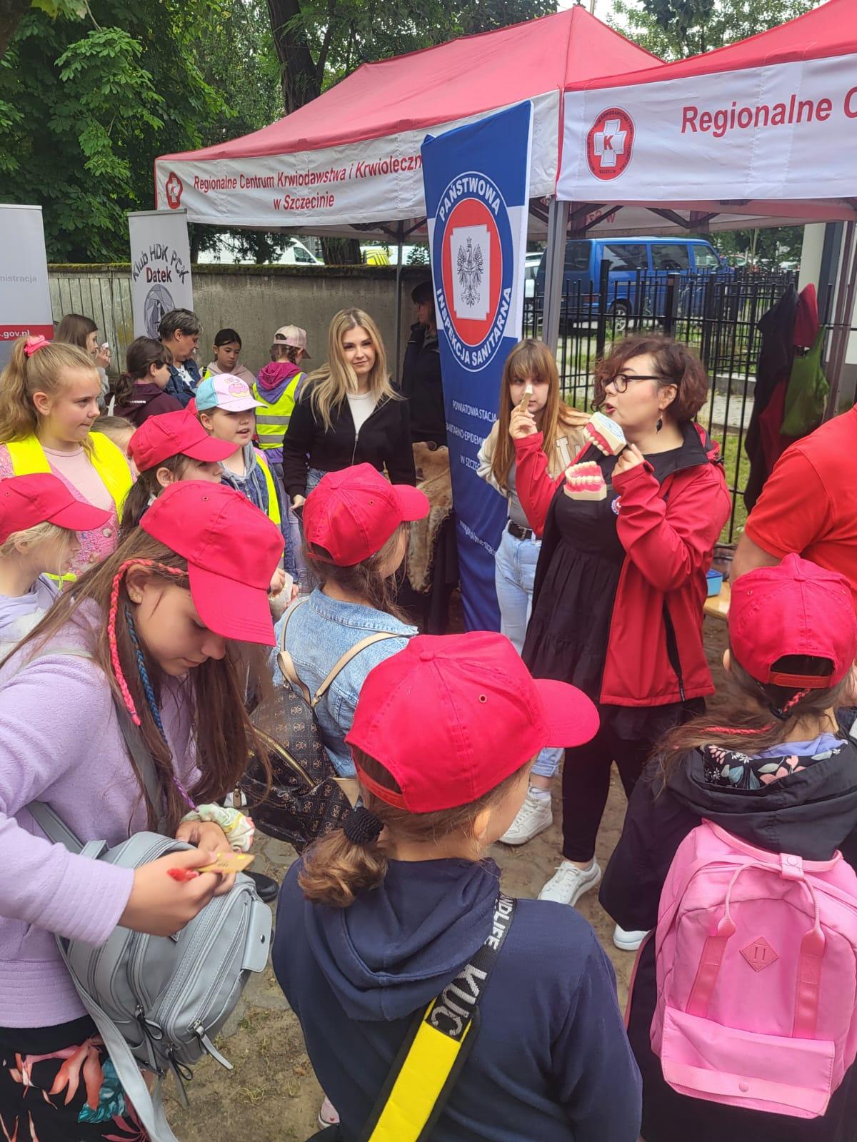 W dniu 14.06.2024r. pracownicy sekcji Oświaty Zdrowotnej i Promocji Zdrowia Powiatowej Stacji Sanitarno – Epidemiologicznych w Szczecinie przeprowadzili stoisko profilaktyczno-edukacyjne podczas wydarzenia pt. „Obchody Światowego Dnia Krwiodawcy. W trakcie akcji przeprowadzone były pomiary wydolności płuc (badanie spirometryczne), badania zawartości tlenku węgla (CO) w wydychanym powietrzu za pomocą smokolyzera, badanie ciśnienia krwi, symulacje zażycia substancji psychoaktywnych z wykorzystaniem narko i alkogogli, instruktaż samobadania piersi, prawidłowego mycia zębów. Na stoisku dostępne były materiały edukacyjne dotyczące profilaktyki chorób nowotworowych, zakaźnych kalendarze sczepień oraz ulotki z zakresu promocji zdrowia. Z oferty stoiska skorzystało 180 uczestników wydarzenia.