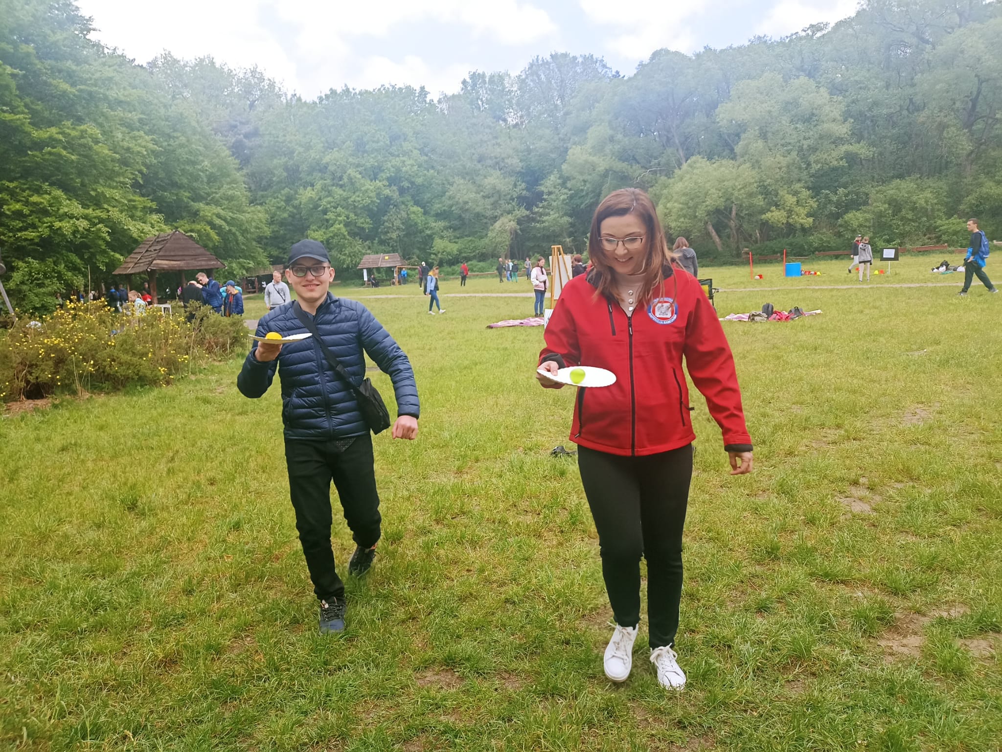 · konkurencje sportowe; bieg z jajkiem i wyścig w workach.