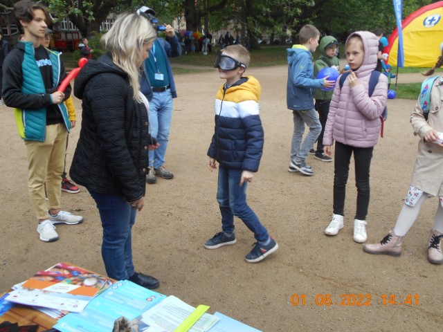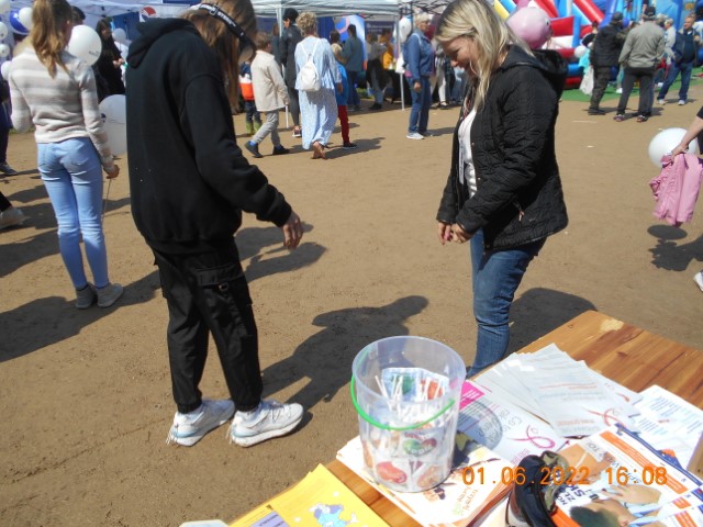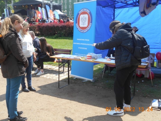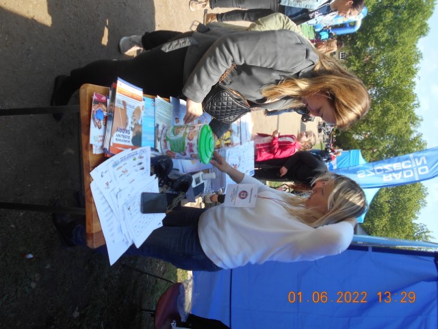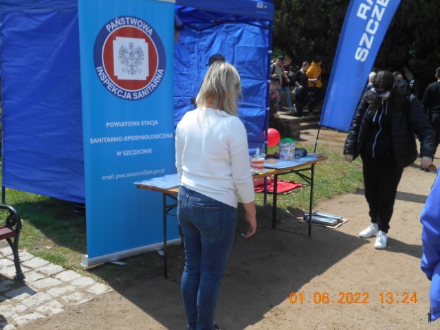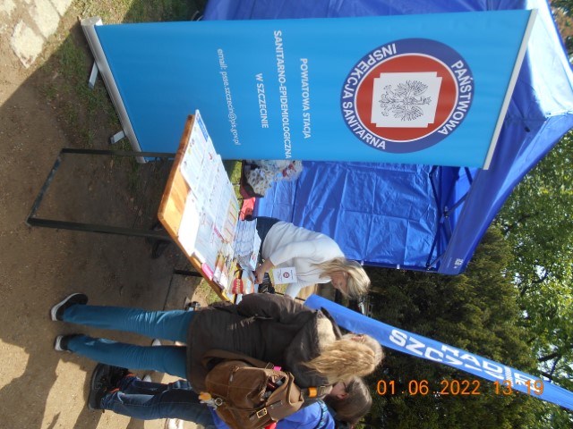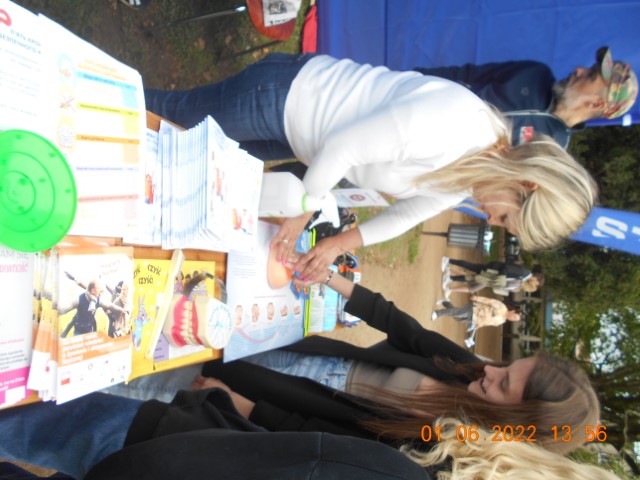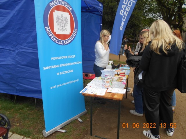 W dniu 01.06.2022 r. pracownicy Oświaty Zdrowotnej i Promocji Zdrowia Powiatowej Stacji Sanitarno-Epidemiologicznej w Szczecinie zorganizowali stoisko profilaktyczno-edukacyjne, w trakcie którego dokonywano analizy składu masy ciała, naukę samobadania piersi na fantomie, badanie ciśnienia krwi, symulacje zażycia substancji psychoaktywnych z wykorzystaniem narko i alkogogli, pomiar wydolności płuc (badanie spirometryczne), badania zawartości tlenku węgla (CO) w wydychanym powietrzu za pomocą smokolyzera, instruktaż prawidłowego mycia zębów oraz instruktaż udzielania Pierwszej Pomocy Przedmedycznej na fantomie. Na stoisku dostępne były materiały edukacyjne dotyczące profilaktyki chorób zakaźnych i promocji zdrowia w języku polskim i ukraińskim oraz programów i akcji realizowanych przez pion Oświaty Zdrowotnej i Promocji Zdrowia PIS na terenie miasta Szczecin. Z oferty działań stoiska skorzystało łącznie 200 osób.
