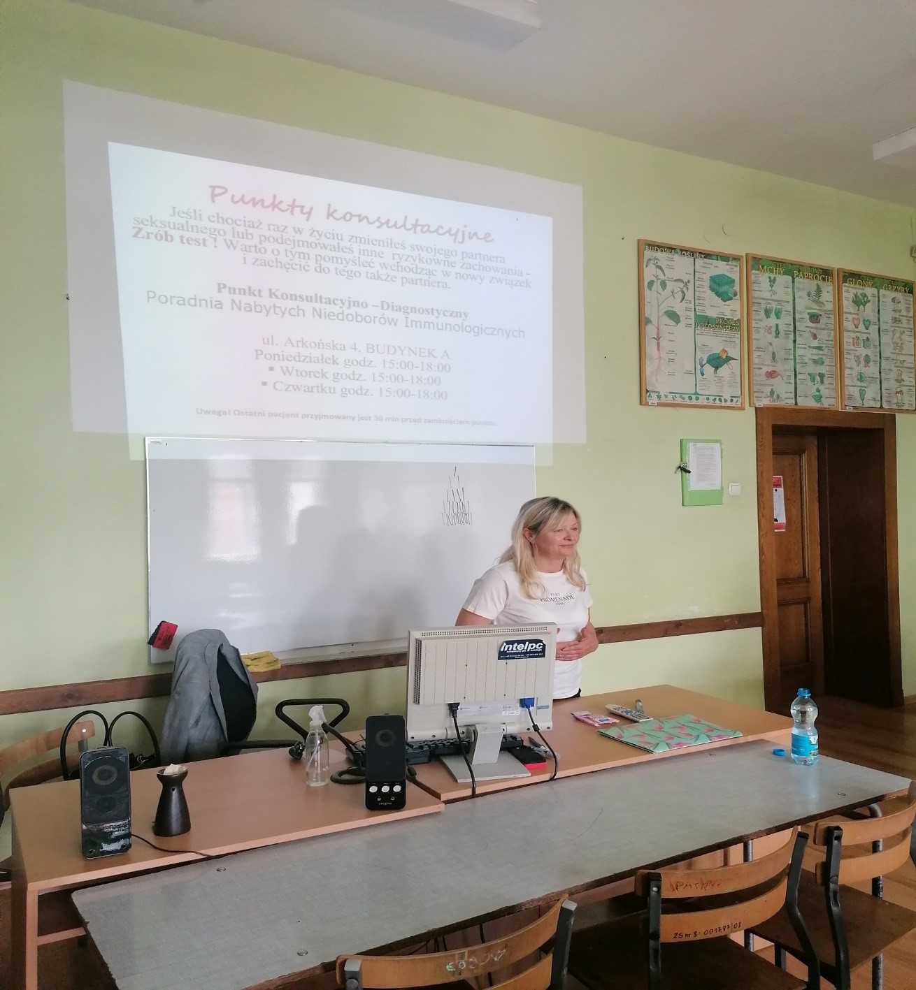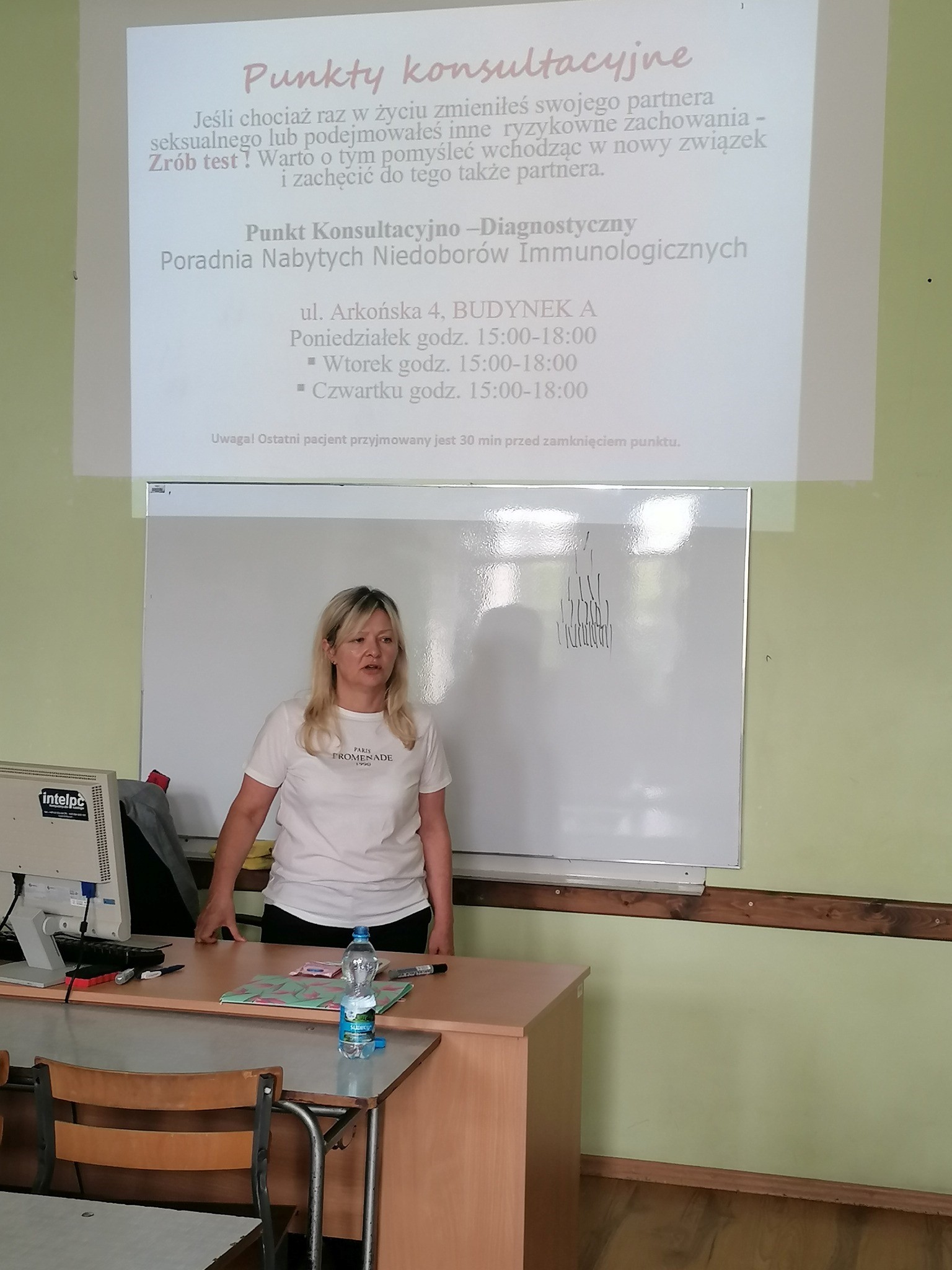 W dniu 19 maja 2022r. Kierownik sekcji Oświaty Zdrowotnej i Promocji Zdrowia z Powiatowej Stacji Sanitarno-Epidemiologicznej w Szczecinie Magdalena Stachel przeprowadziła warsztaty z zakresu profilaktyki HIV/AIDS w Zespole Szkół nr 8 w Szczecinie. Uczniowie mieli okazję uzupełnić swoją wiedzę na temat zagrożeń związanych z ryzykownymi zrachowaniami w kontekście profilaktyki chorób przenoszonych drogą płciowa.