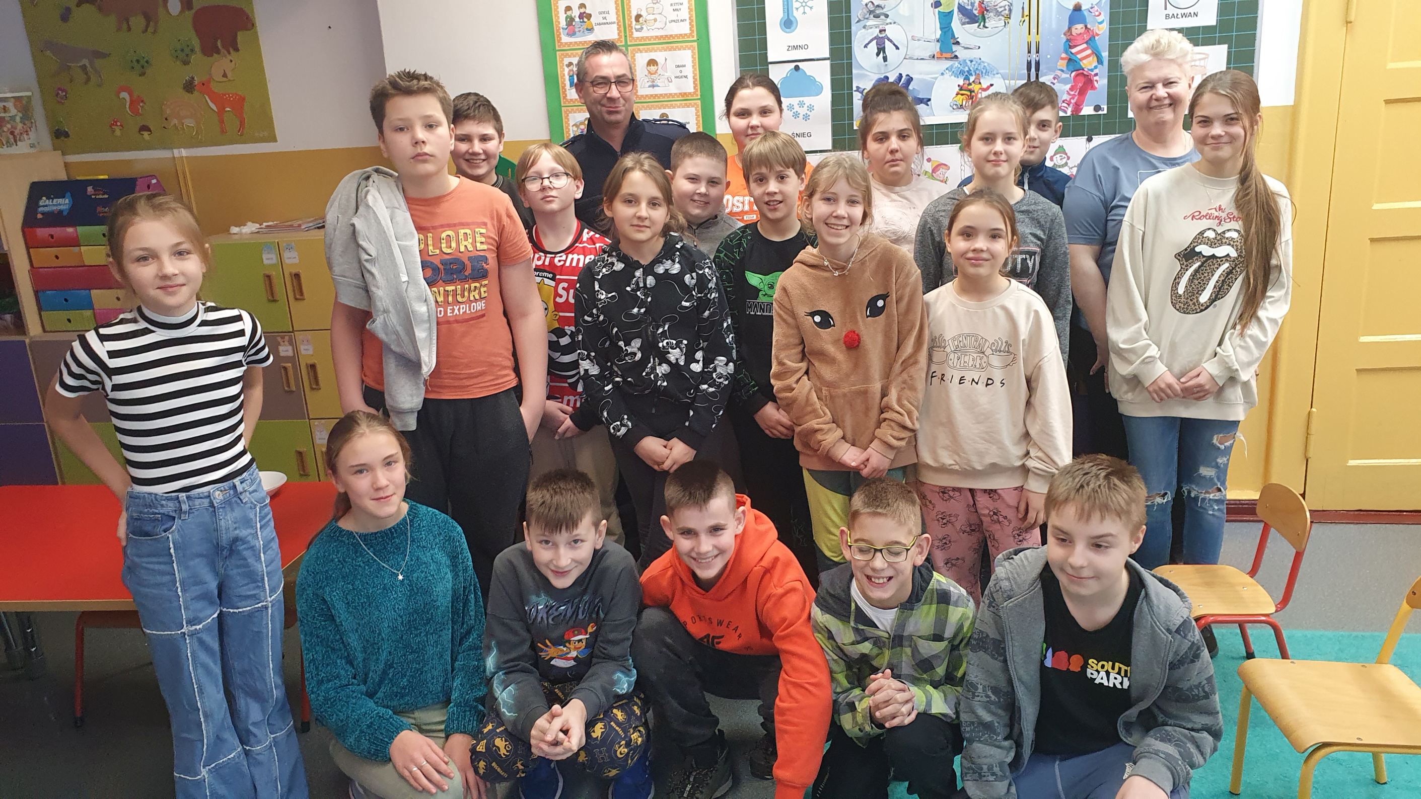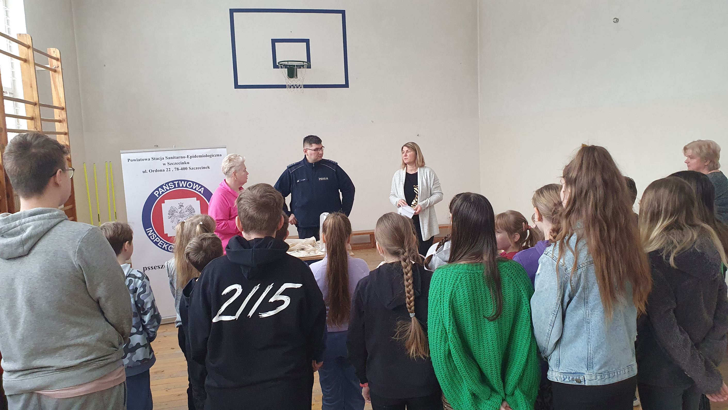 W trosce o zdrowie najmłodszych i nieco starszych mieszkańców powiatu szczecineckiego od połowy stycznia 2023r, pracownik OZiPZ wraz z policjantami Komendy Powiatowej Policji w Szczecinku prowadzą działania pn. Bezpiecznych Ferii 2023. Dzieciaki, te mniejsze i większe uwielbiają spotkania z p. Izą , ale jeszcze bardziej cieszą się, gdy na spotkanie przychodzą „kochani mundurowi”- asp.sztab. Jarosław Flak, asp. Krzysztof Wawrzyniak oraz ich Pani Ania – st.asp. Anna Matys.