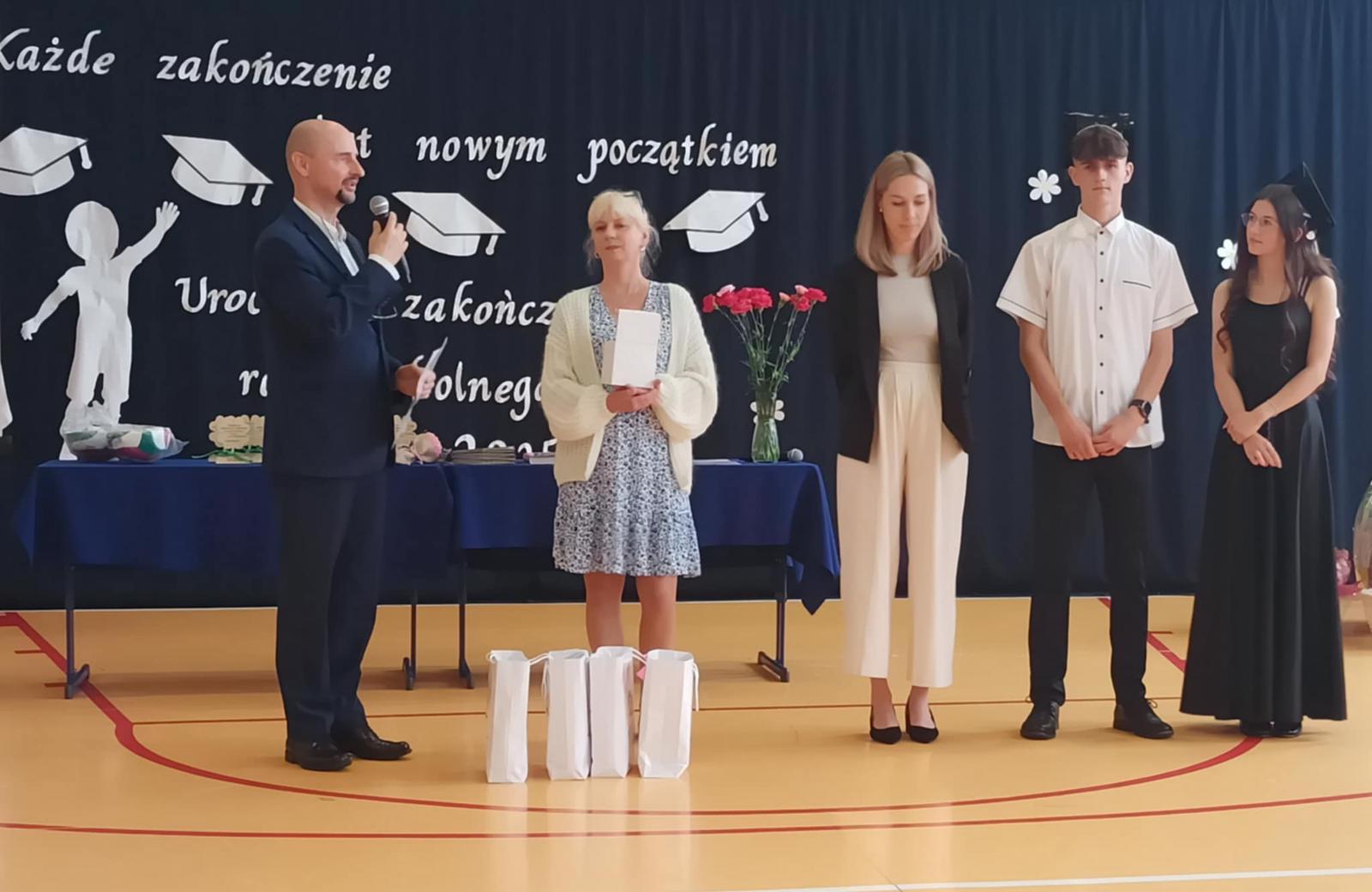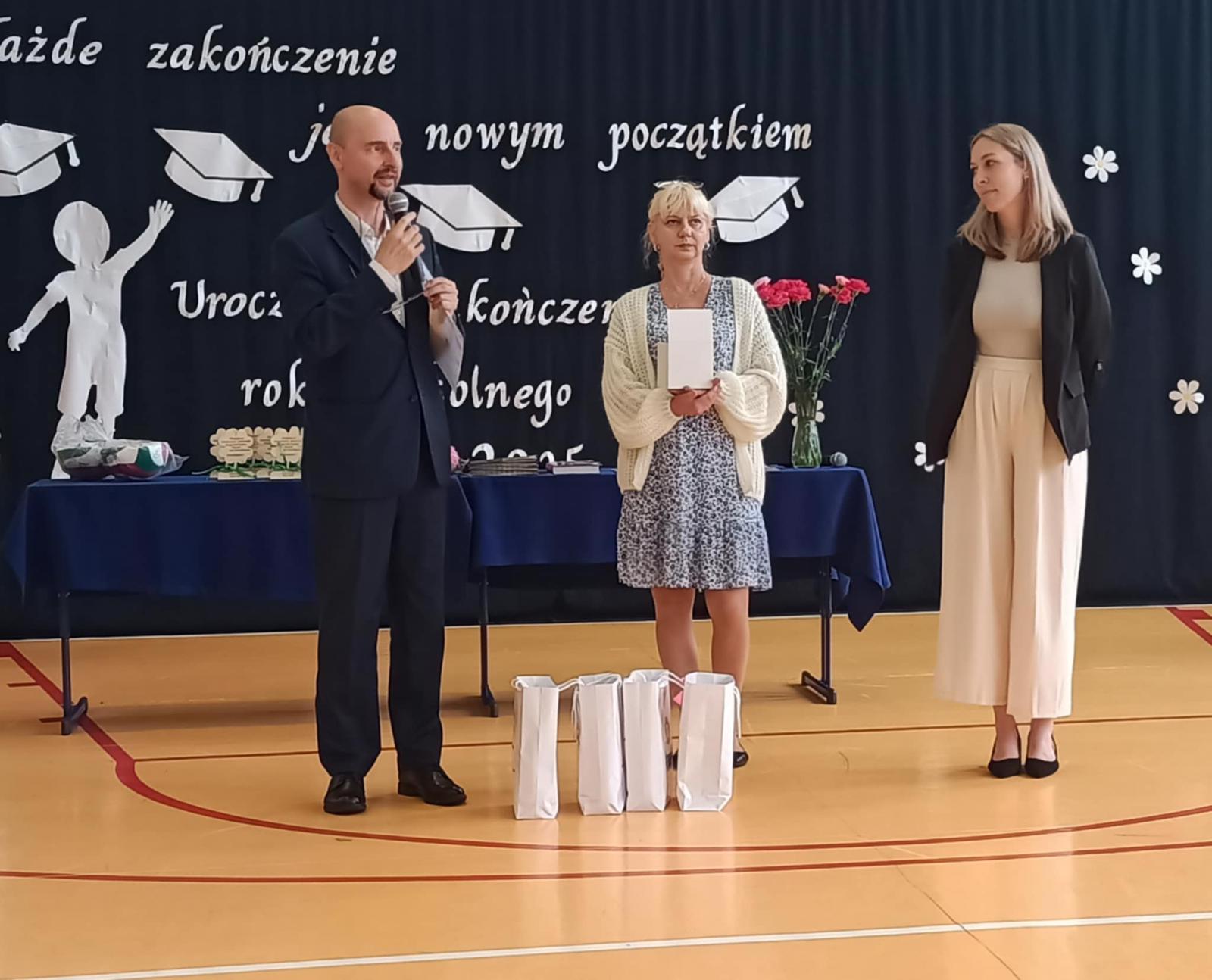 27.06.2025 r. w Szkole Podstawowej im. Mikołaja Kopernika w Szymanach podczas uroczystego zakończenia roku klas ósmych odbyło się wręczenie przez Państwowego Powiatowego Inspektora Sanitarnego w Szczytnie oraz pracownika Promocji Zdrowia i Oświaty Zdrowotnej PSSE w Szczytnie medali „MISTRZ ZDROWIA” oraz upominków za przejście do etapu krajowego konkursu „Zroluj zdrowie – siła wyborów” zorganizowanego przez Główny Inspektorat Sanitarny. Konkurs był wydarzeniem ogólnopolskim i przebiegał w dwóch etapach: wojewódzkim oraz krajowym. Zadaniem uczestników było nagranie i zmontowanie rolki na media społecznościowe na temat zdrowego stylu życia.