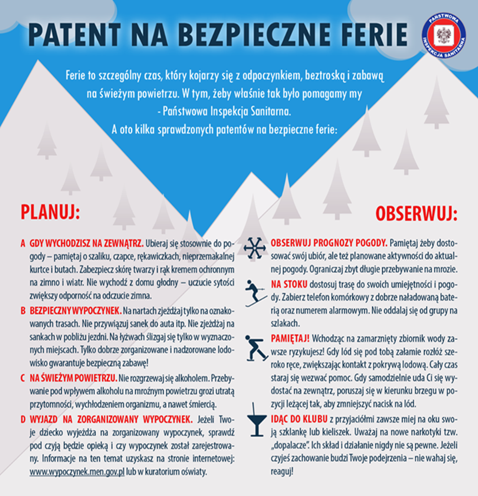 Przez cały okres ferii będziemy prowadzili także w naszych mediach społecznościowych wzmożone działania edukacyjne propagujące bezpieczne zachowania w czasie zimowego wypoczynku.