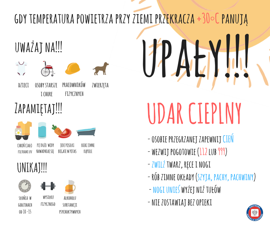 - intensywny sport czy fizyczna praca są niewskazane podczas upałów. Wysiłek prowadzi do wzmożonej produkcji ciepła, co grozi przegrzaniem, odwodnieniem, a nawet udarem cieplnym.