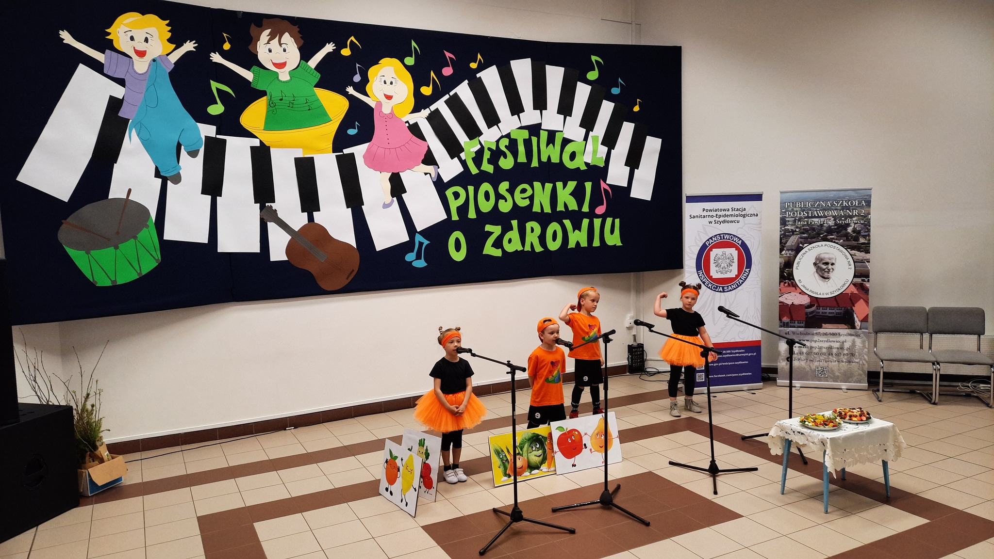 Wykonali piosenki o zdrowym stylu życia, prawidłowym odżywianiu, profilaktyce nałogów, higienie osobistej oraz ekologii.![]()