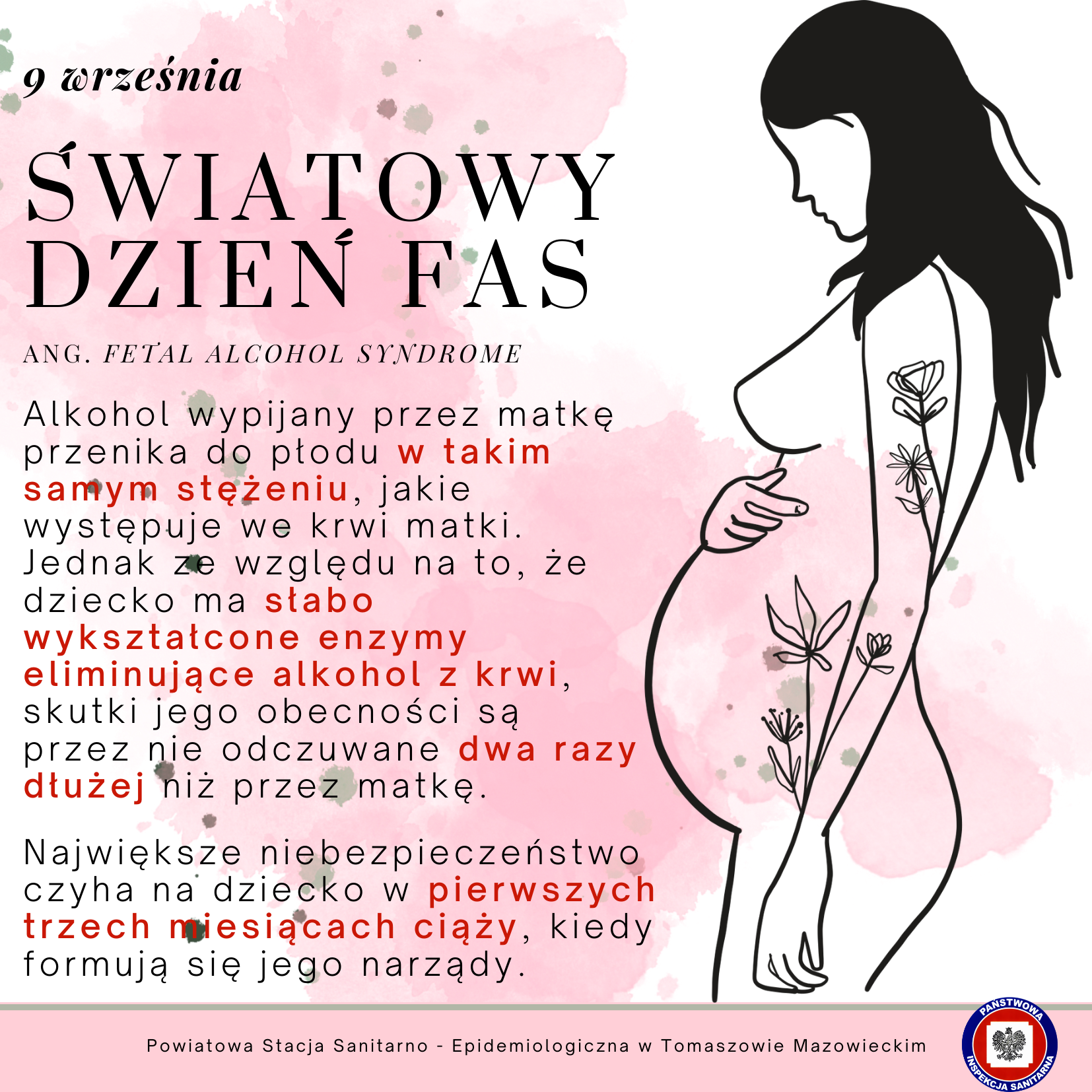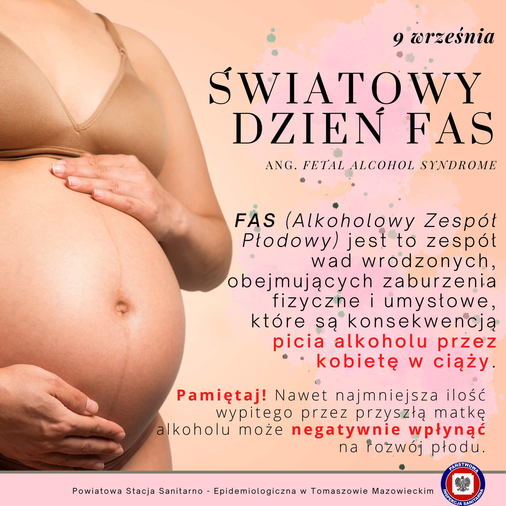 Światowy Dzień FAS (Alkoholowy Zespół Płodowy ang. Fetal Alcohol Syndrome) obchodzony jest 9 września i rozpoczyna się punktualnie o godzinie 9:09 od 1999 roku, kiedy to w Auckland w Nowej Zelandii, o godzinie 9.09 zabrzmiały dzwony w Kościele Metodystów. Powtarzające się dziewiątki w dacie i godzinie mają symboliczną wymowę: 9 miesięcy ciąży bez alkoholu.
