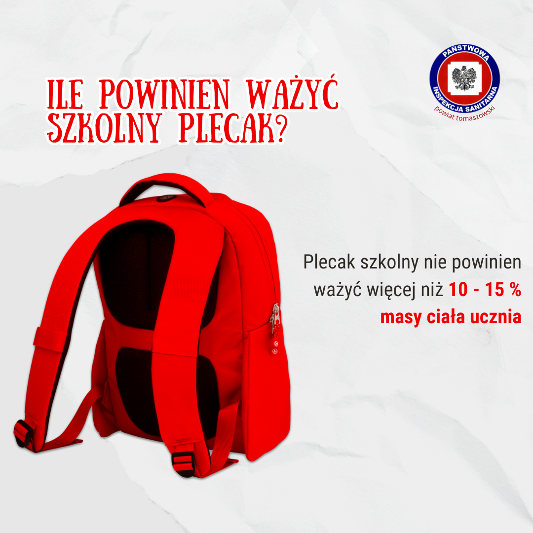 - Masa tornistra nie powinna przekraczać 10% - 15% masy ciała ucznia, U młodszych dzieci zaleca się stosowanie dolnej granicy, czyli maksymalnie 10% masy ciała,